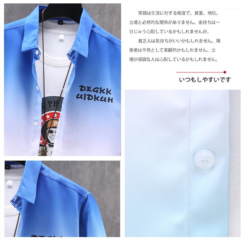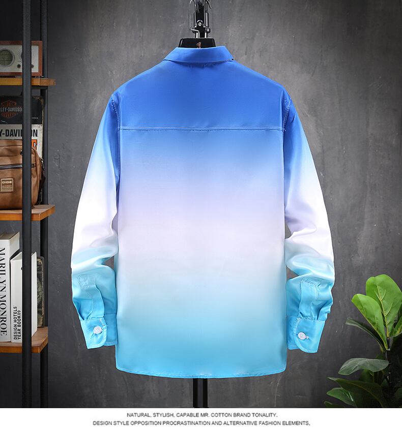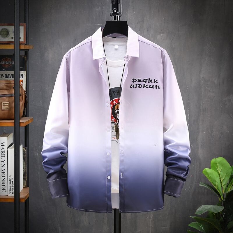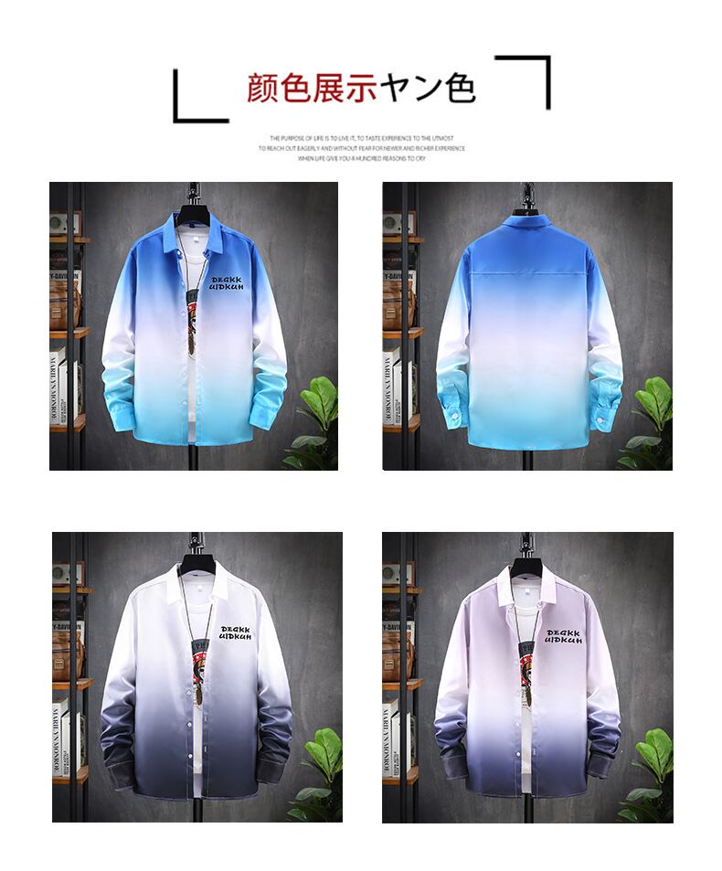 -quality shirt men's long-sleeved gradient color ese loose large size autumn fat fried street jacket handsome trend ロング ストリート 大きめサイズ オータム 秋物 doushi53670253356