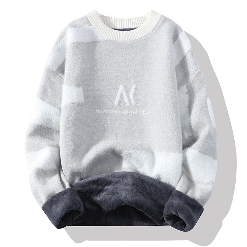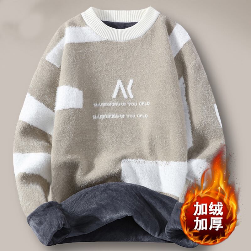 Men's half turtleneck sweater autumn and winter trend warm clothes plus velvet thickened youth student knitted bottoming shirt オータム 秋物 ウィンター 冬物 doushi21416043867