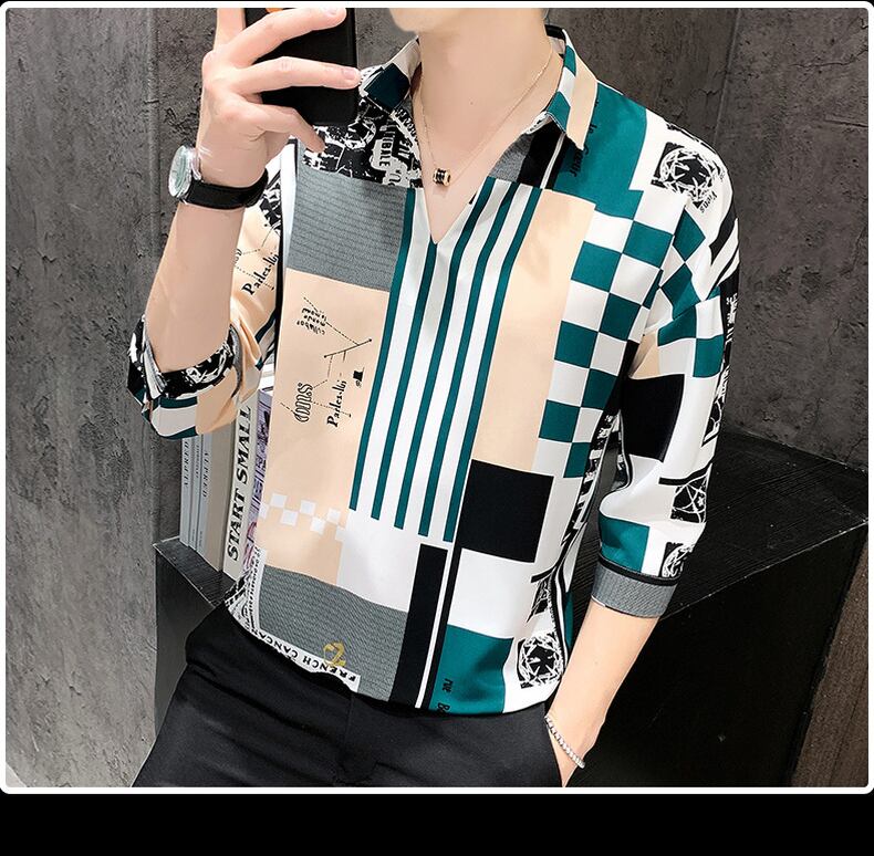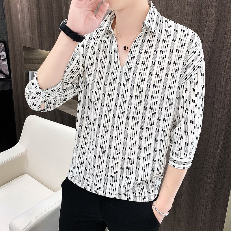 Summer three-quarter sleeve shirt men's short-sleeved tide brand ins ruffian handsome social spirit guy loose personality pullover shirt サマー 夏物 doushi43047465026