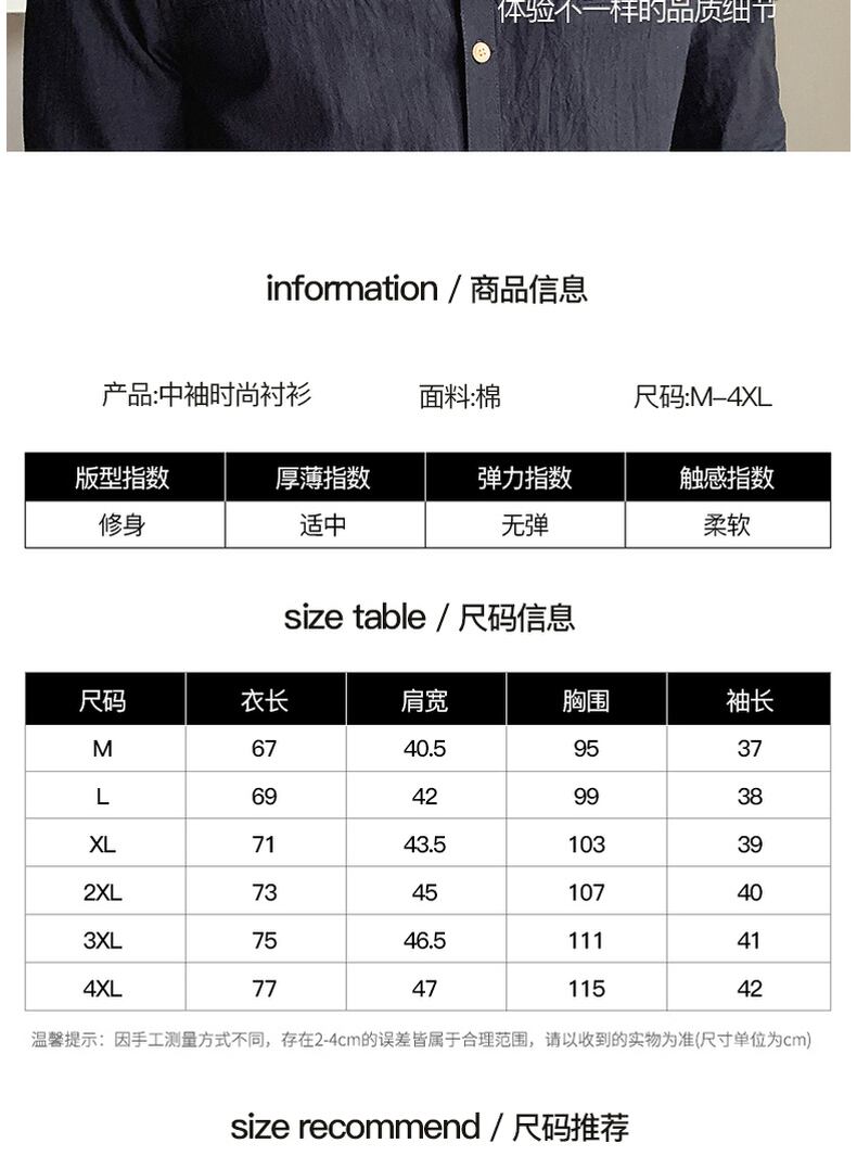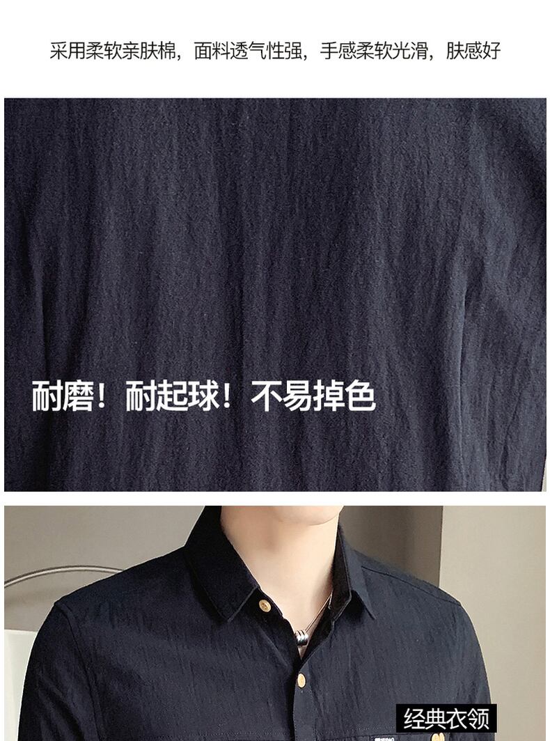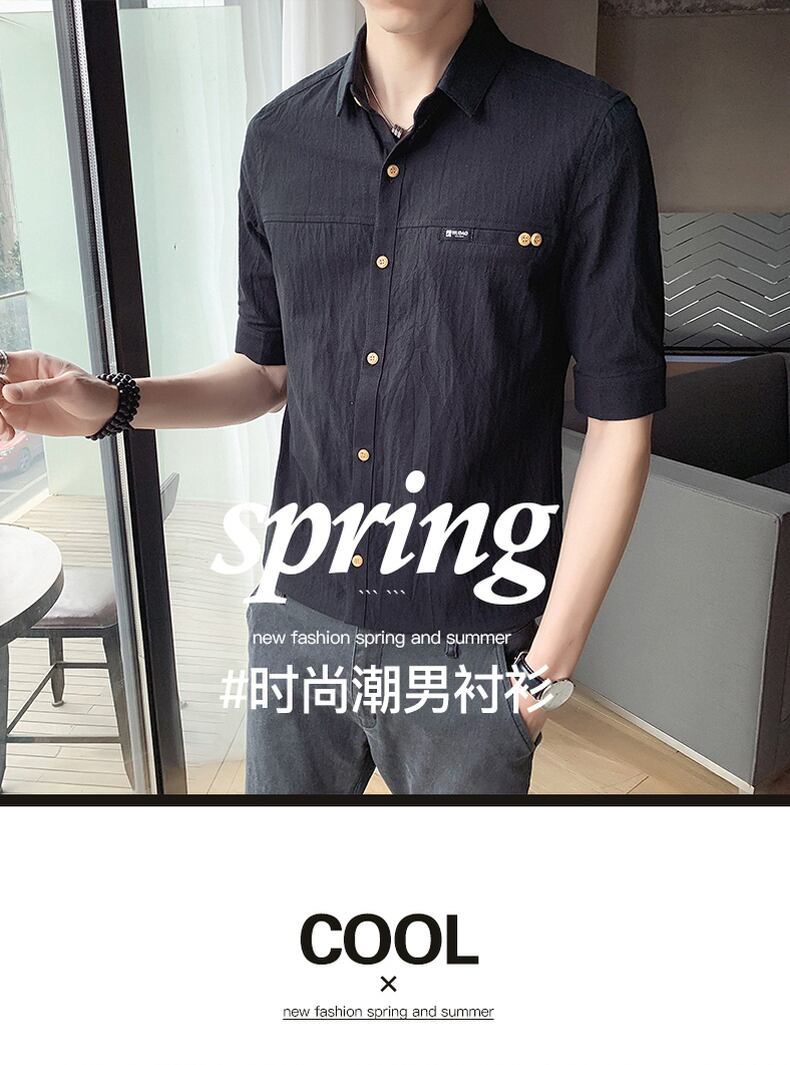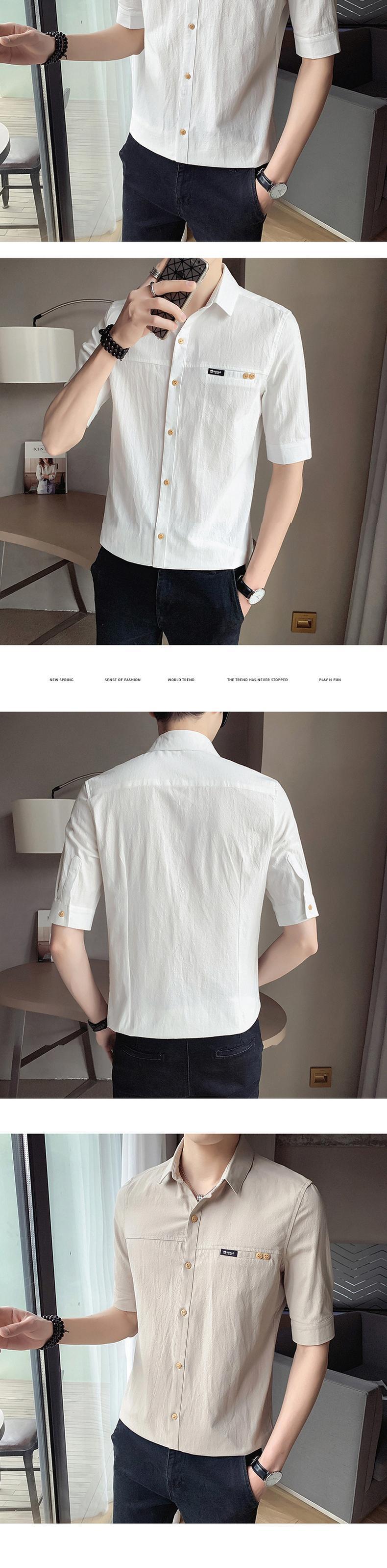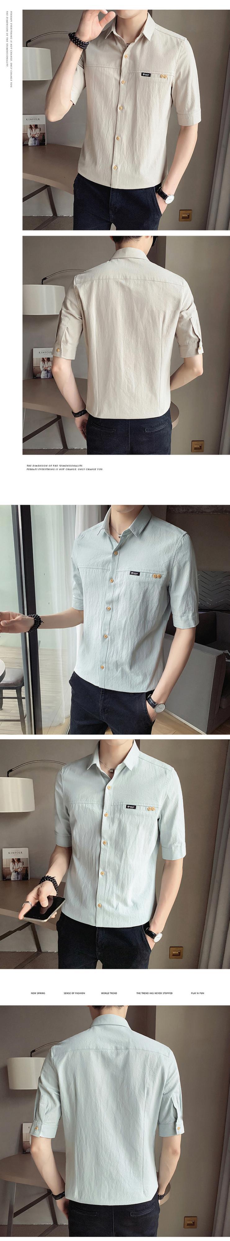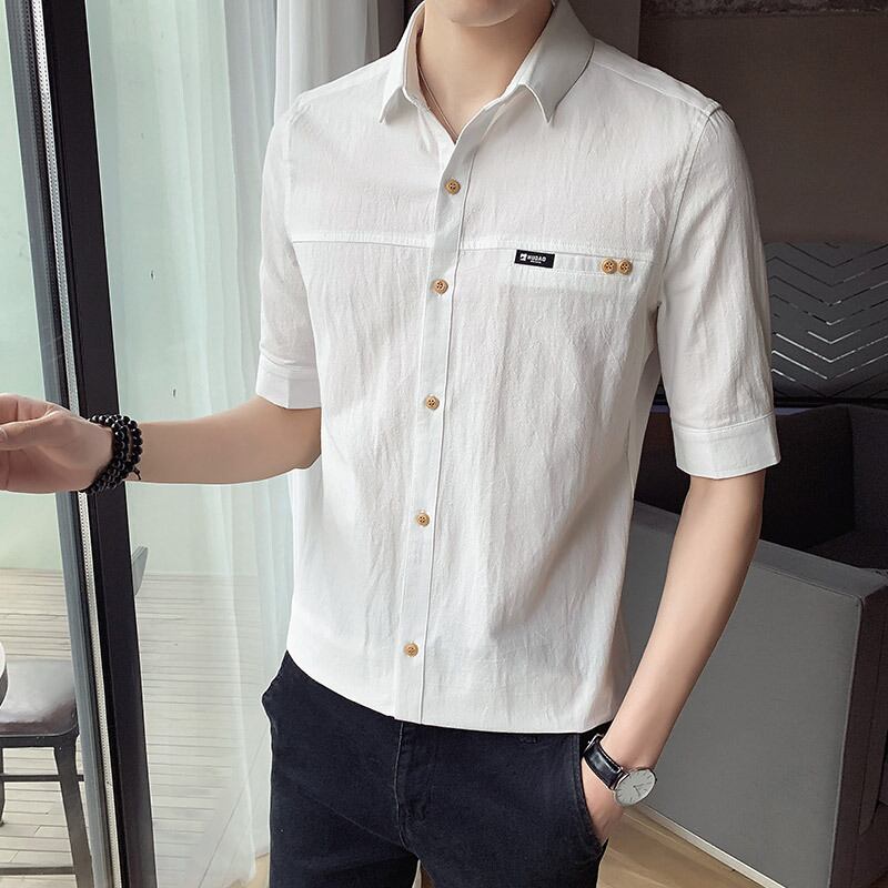 Cotton short-sleeved shirt men's summer thin three-quarter-sleeve shirt youth versatile self-cultivation five-point mid-sleeve linen inch shirt コットン サマー 夏物 doushi38768610949