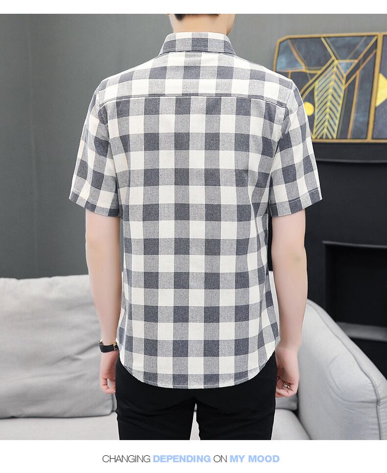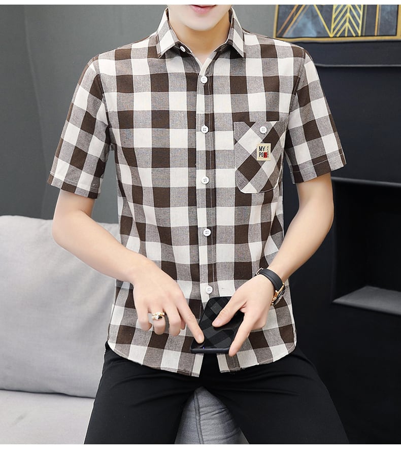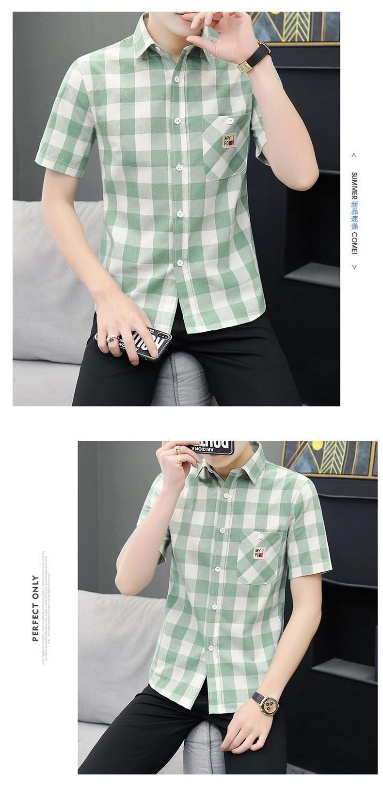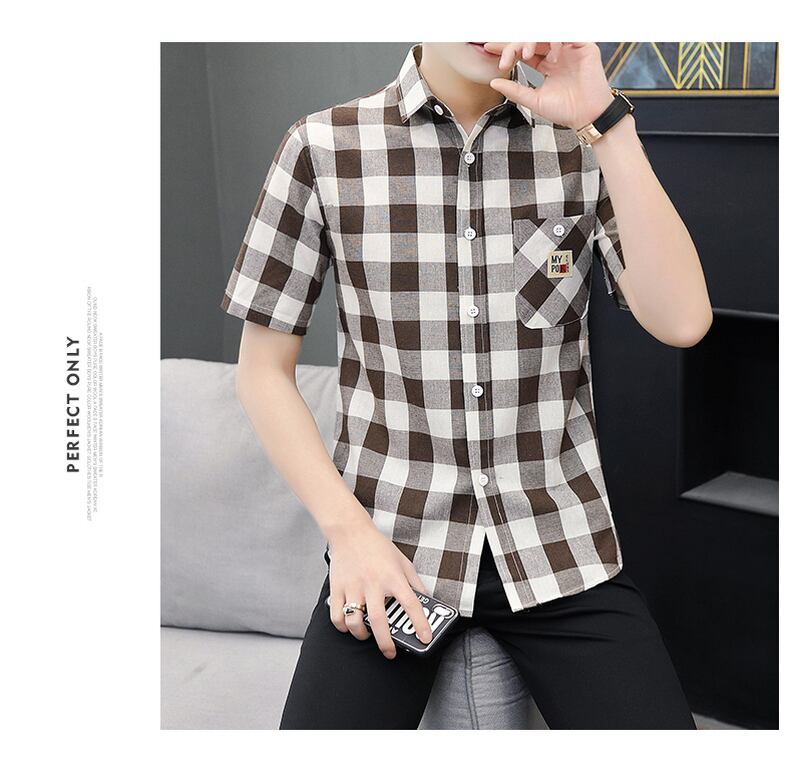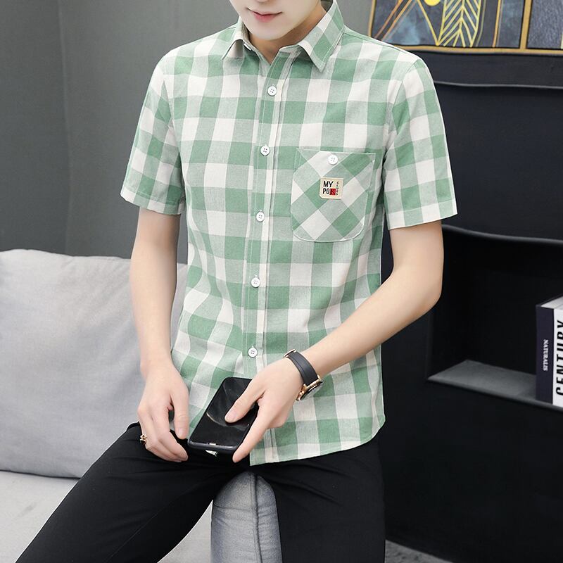 Men's shirts, short-sleeved summer new version, casual teenagers, handsome plaid inch shirts, men's fashion brand shirts カジュアル シャツ サマー 夏物 doushi52835342600