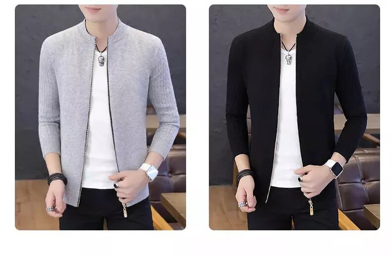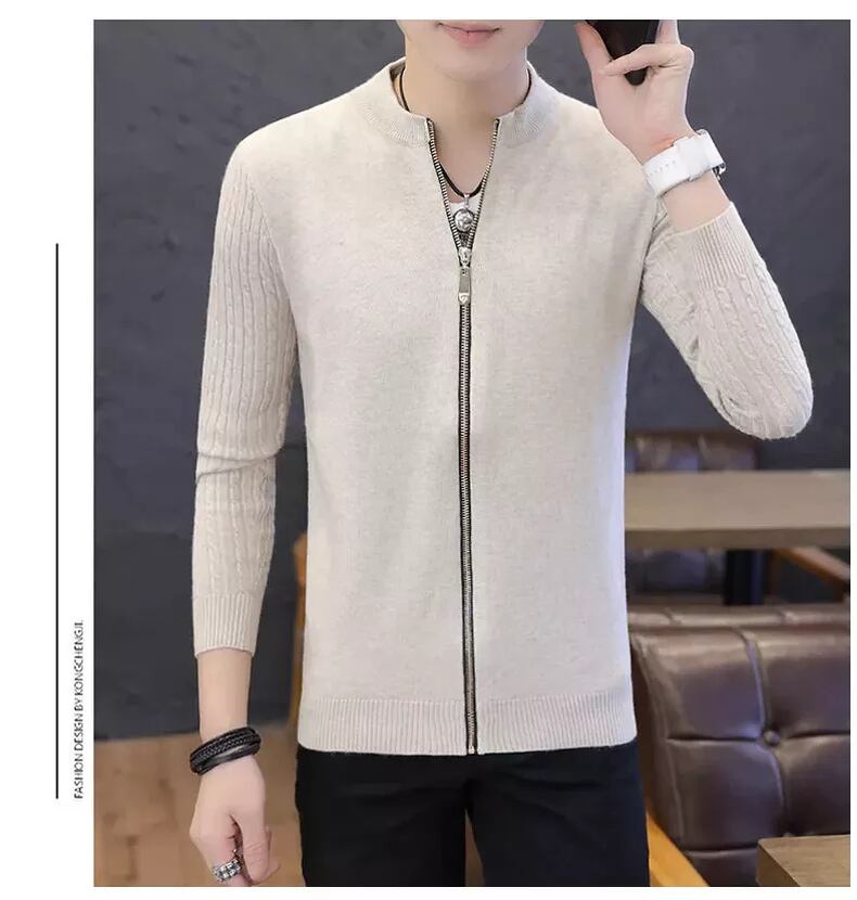 Knitted cardigan young men outside wearing stand collar jacket autumn men's sweater Slim jacket trendy men's wool カーディガン オータム 秋物 スリム doushi93043905985