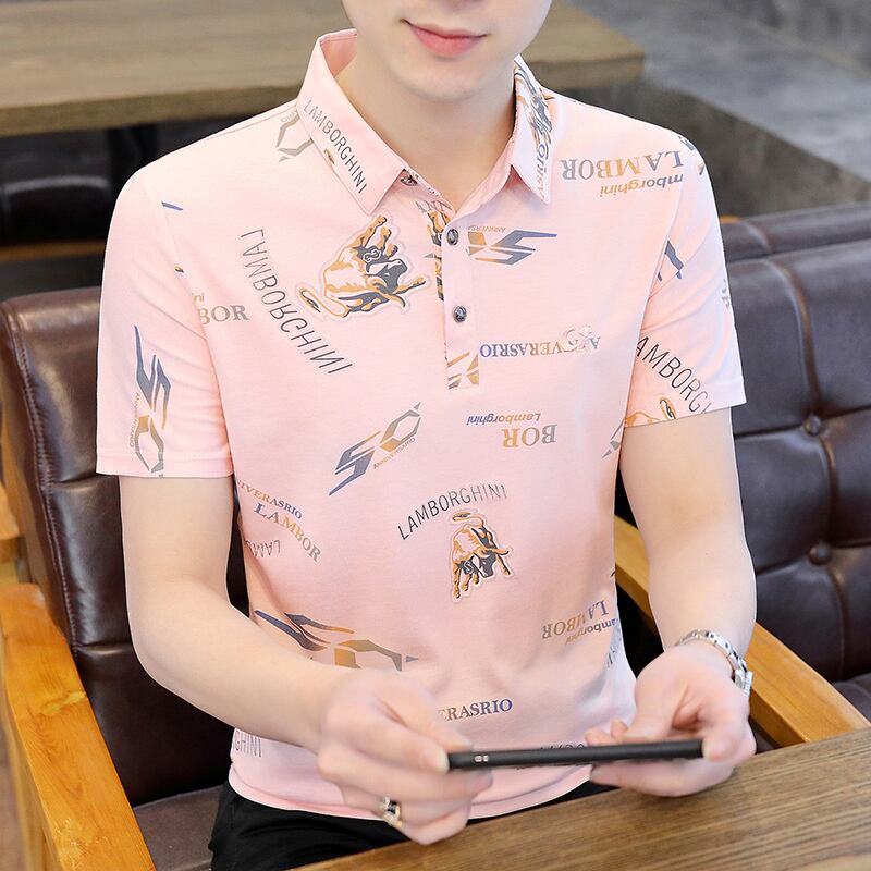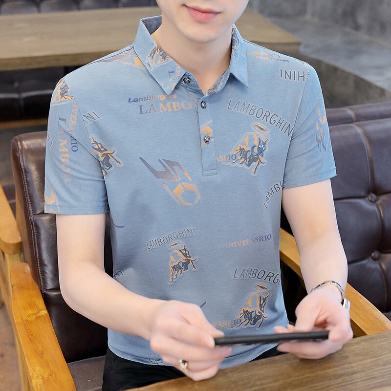 Ice-sensing short-sleeved T-shirt men's summer tide brand ins trend lapel Polo shirt summer men's half-sleeve T-shirt top clothes サマー 夏物 Tシャツ doushi45006630479