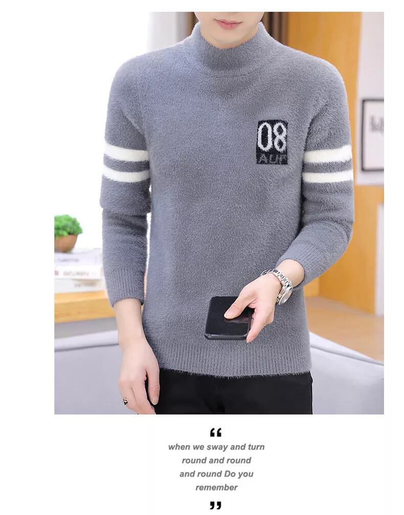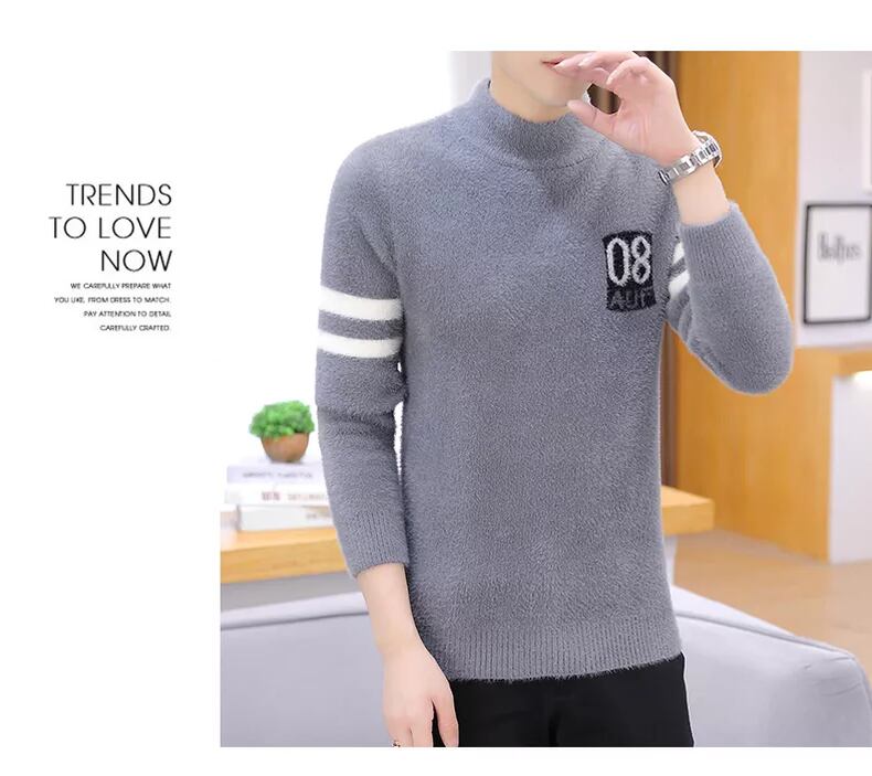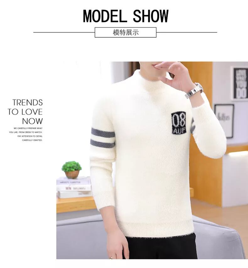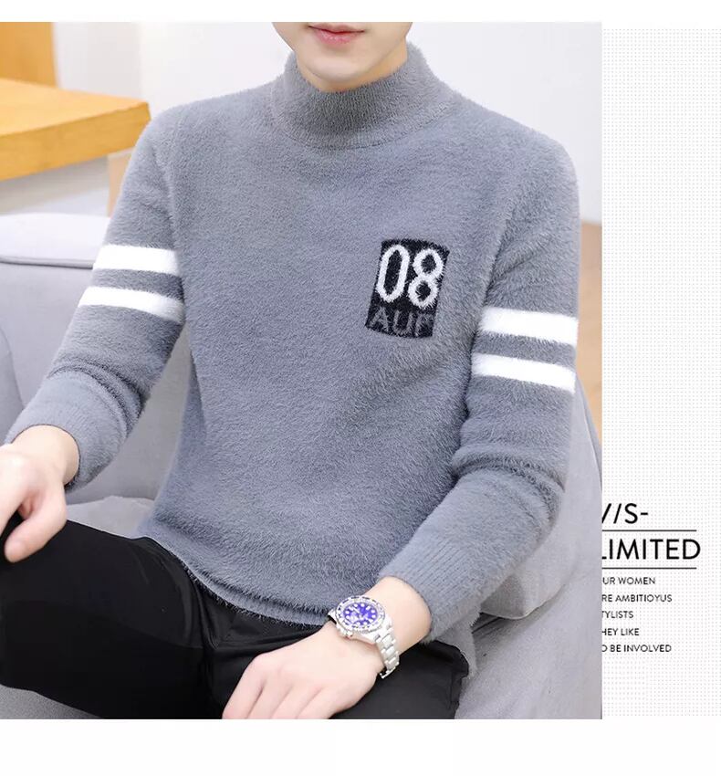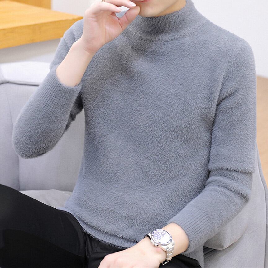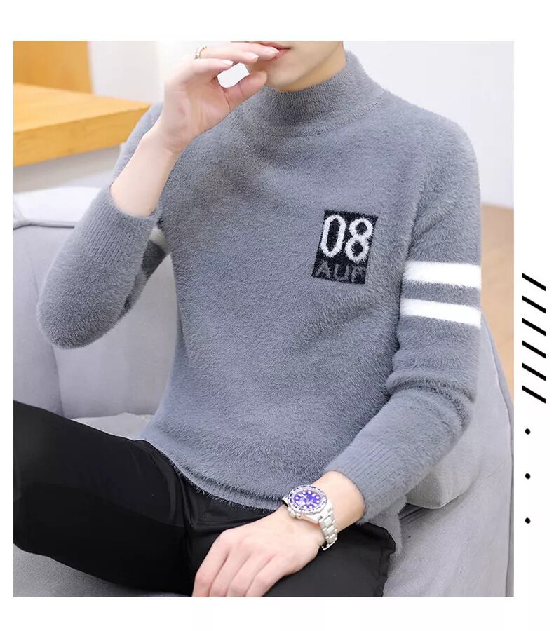 Autumn mink fleece sweater men's half turtleneck trend bottoming sweater loose autumn plus velvet thick line clothes オータム 秋物 doushi86290311881