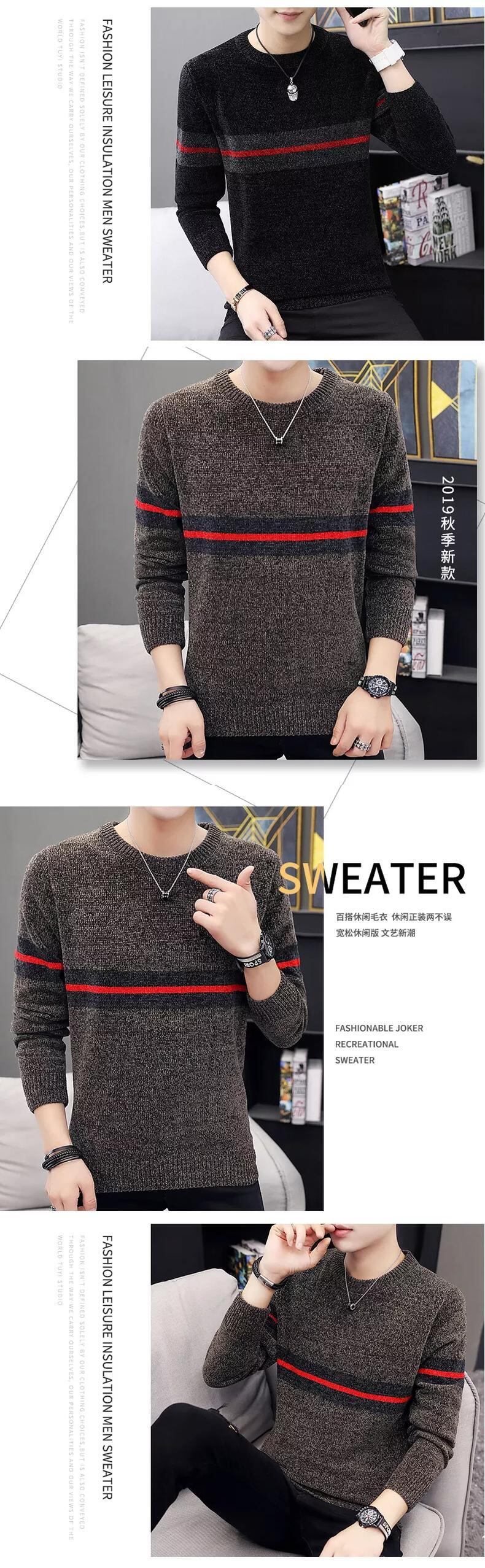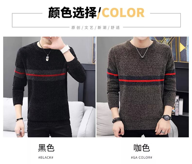 Men's Warm Sweater Round Neck Slim Chenille Sweater Thick Thread Coat Oネック スリム doushi41459566963