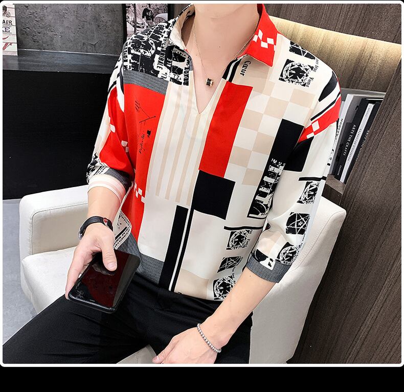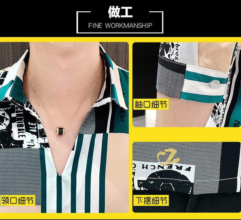 Summer half-sleeved striped men's ice silk V-neck short-sleeved t-shirt version of the trendy ruffian handsome men's T-shirt Tide brand mid-sleeve shirt サマー 夏物 Vネック ストライプ シルク Tシャツ doushi51890974503