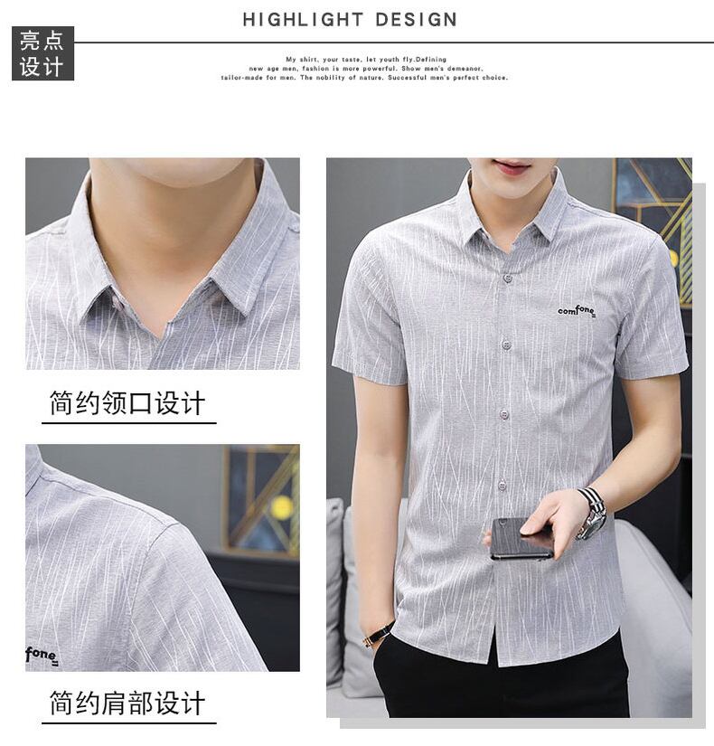 Summer ice silk non-iron mal dress youth work professional shirt men's short-sleeved casual inch shirt slim and handsome shirt men カジュアル サマー 夏物 スリム シルク doushi36408702939
