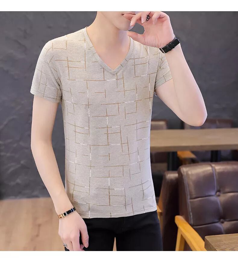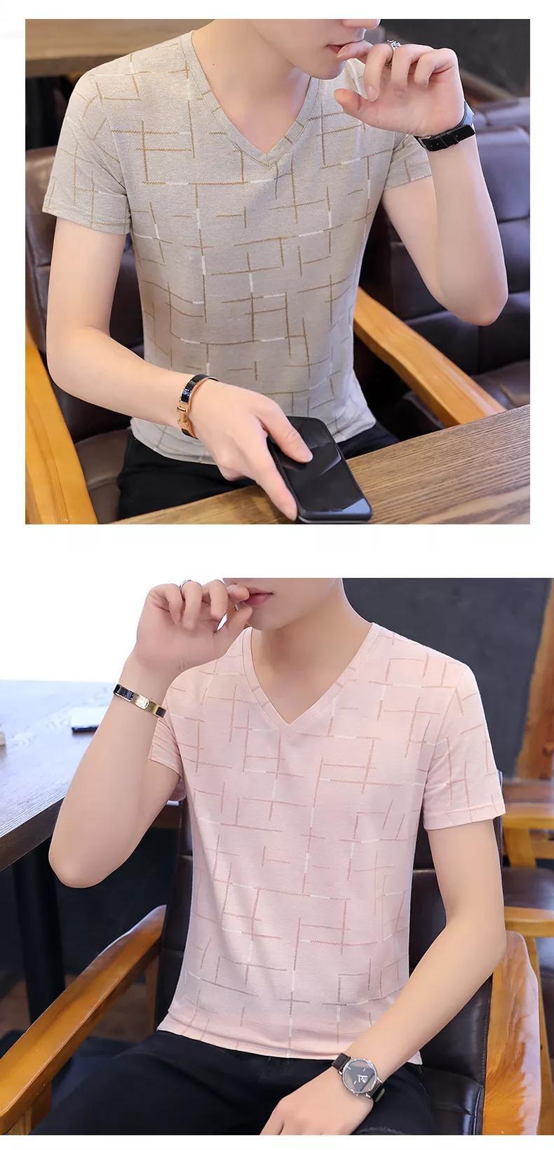 T-shirt men's V-neck bottoming shirt version trend half-sleeved men's ice silk 2022 summer tide brand new men's short-sleeved サマー 夏物 Vネック シルク Tシャツ doushi64916504679