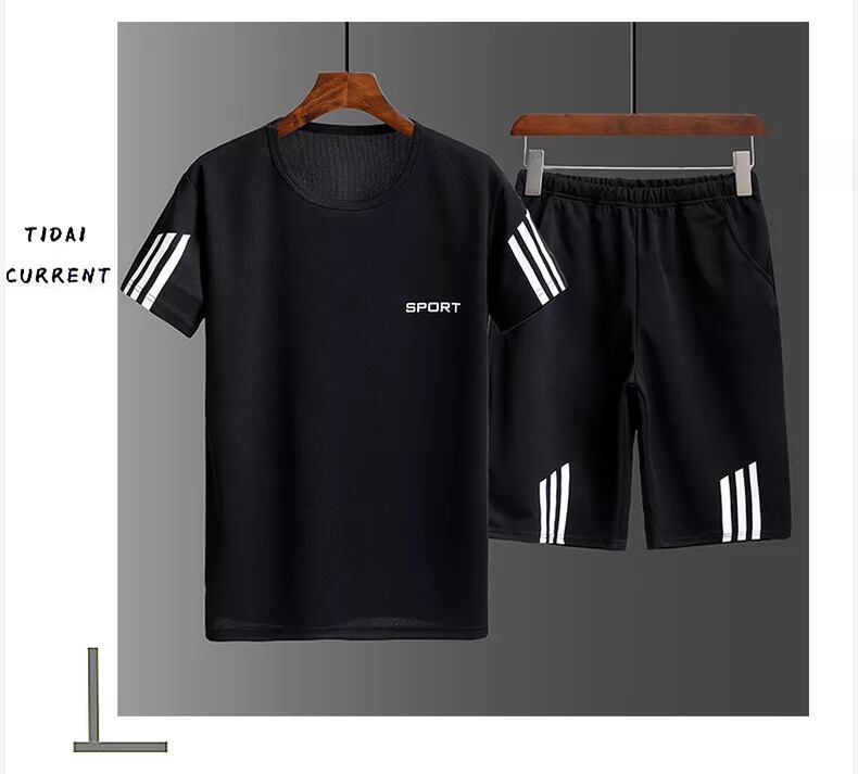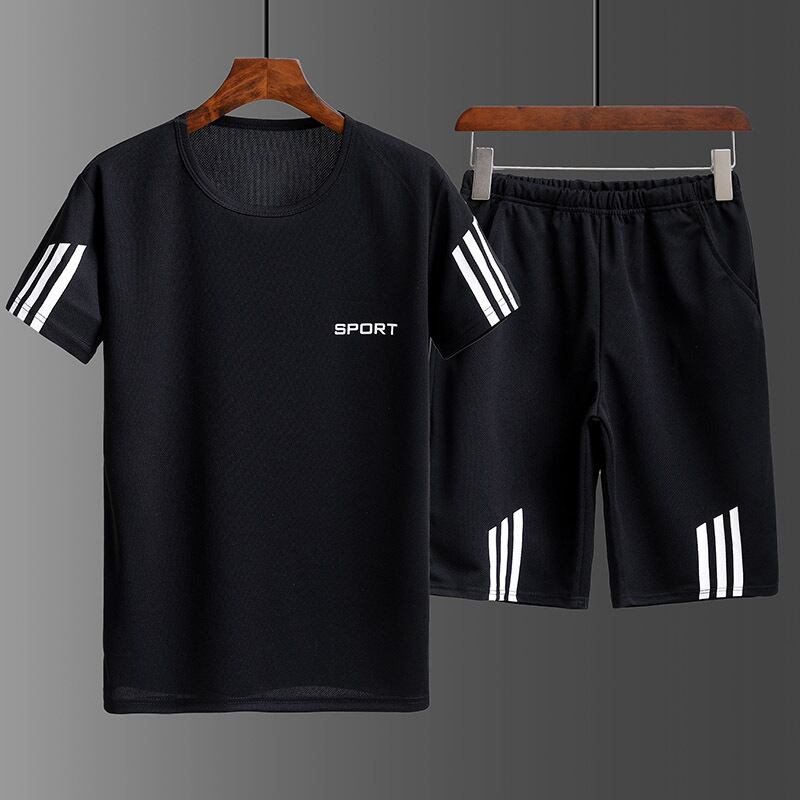 Sports suit men's summer short-sleeved t-shirt casual shorts two-piece summer loose cool running fitness men's clothing カジュアル サマー 夏物 ショーツ ブルマー Tシャツ doushi70036768076