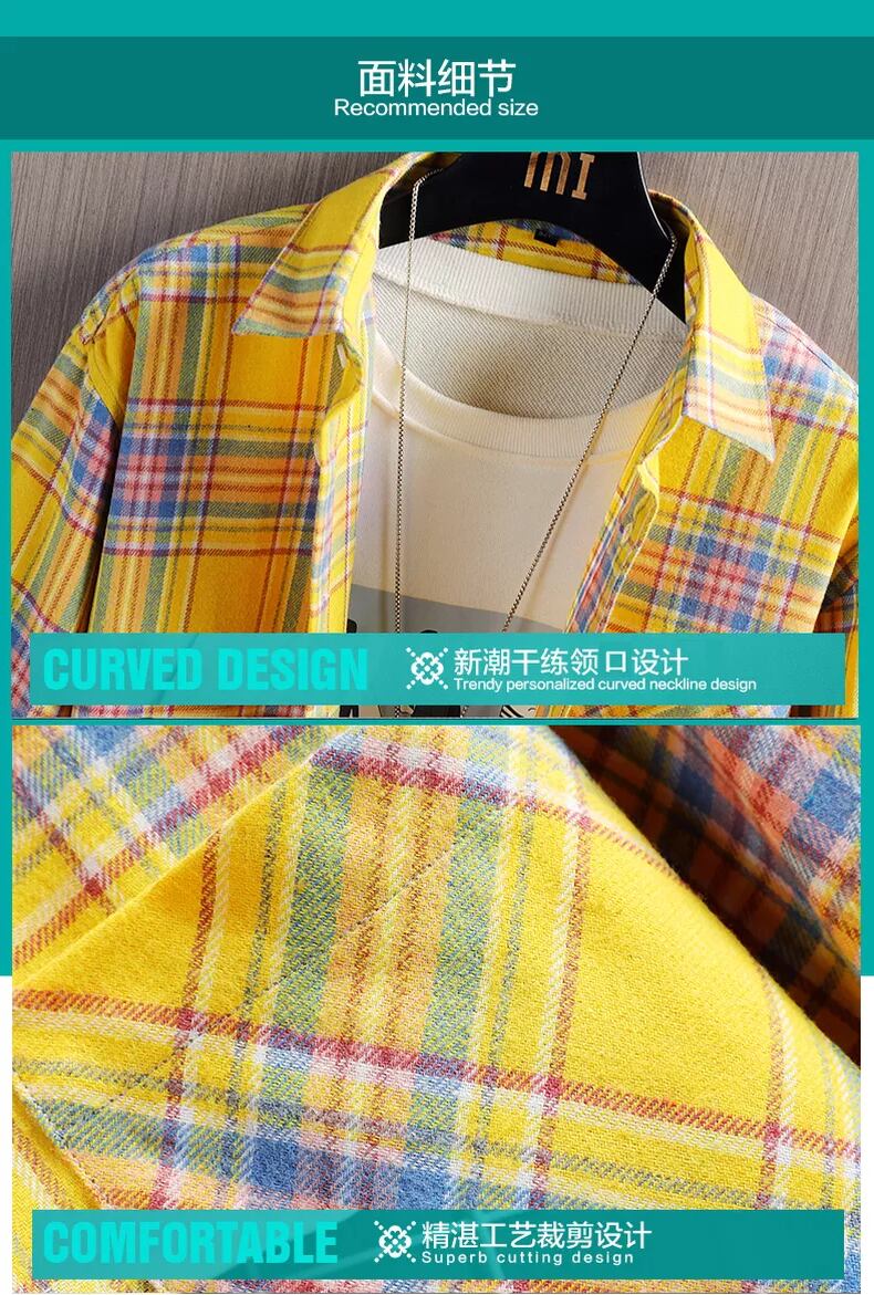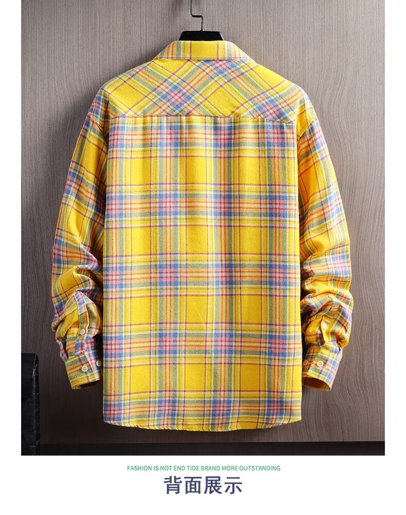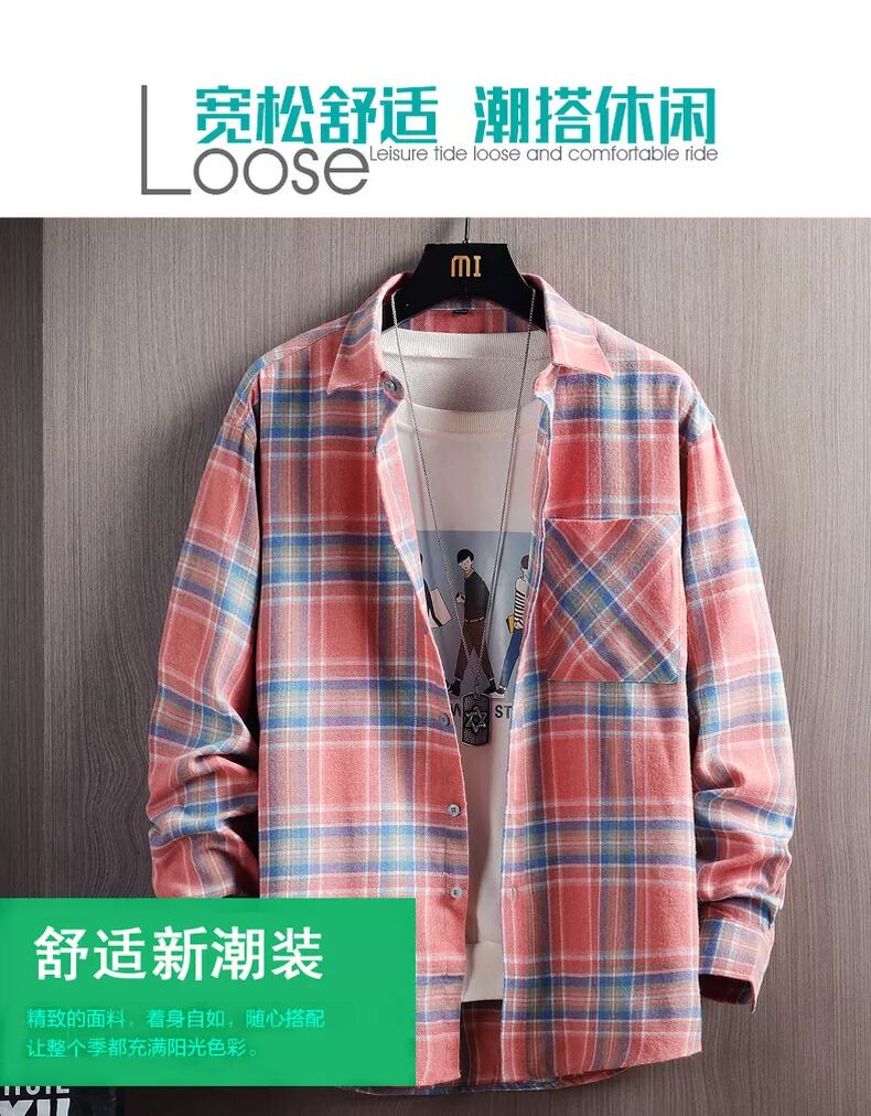 Cotton plaid shirt men's long-sleeved version trend 2022 new handsome shirt jacket men's cotton inch shirt ロング コットン doushi92044926498