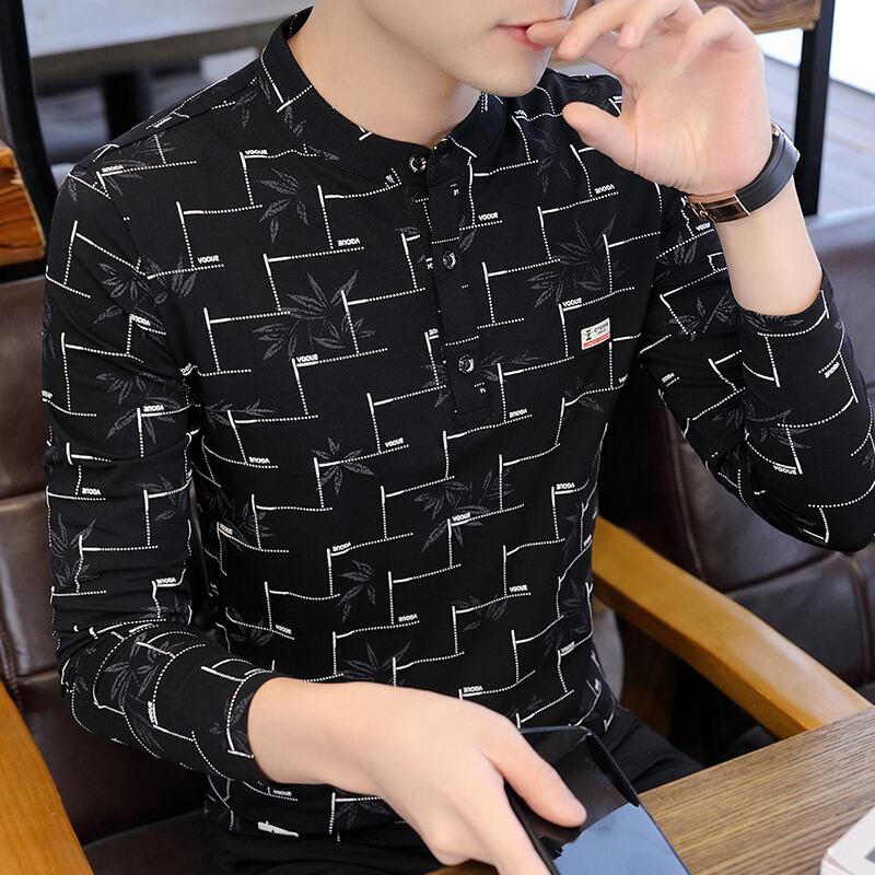 2022 spring new stand-up collar long-sleeved T-shirt men's t-shirt top youth thin section personality handsome bottoming shirt ロング スプリング 春物 Tシャツ doushi34801907890