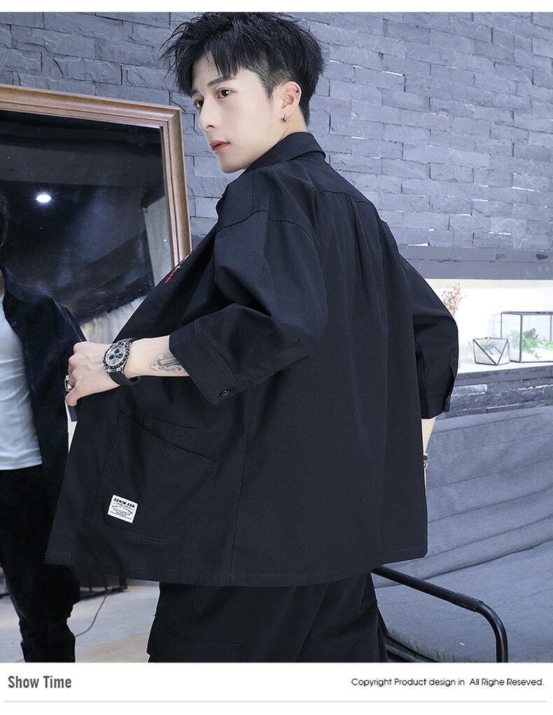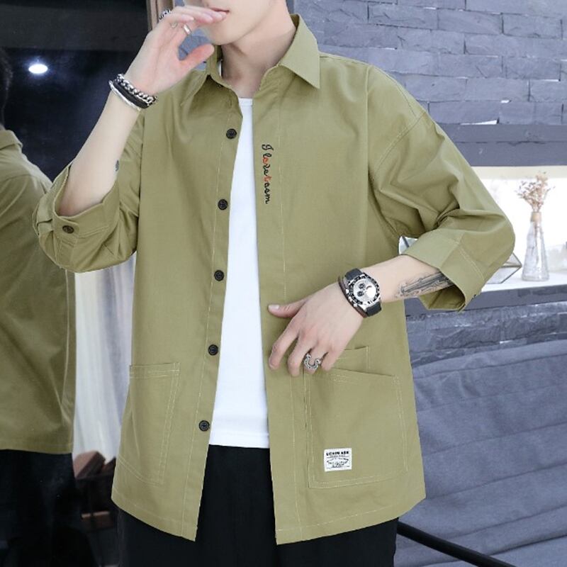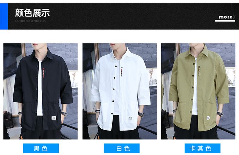 Summer men's short-sleeved shirts loose tooling three-quarter-sleeve shirts trendy jackets ese fashion brand long-sleeved tops ロング シャツ サマー 夏物 doushi18886759346