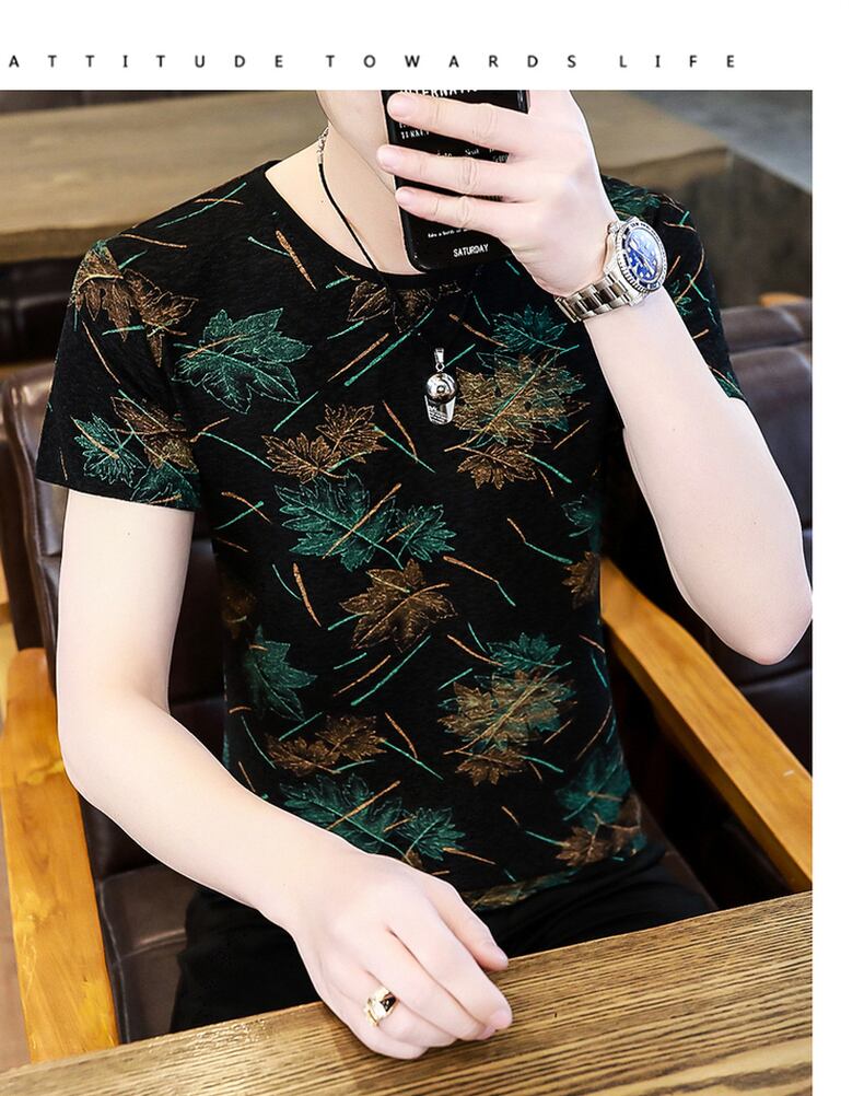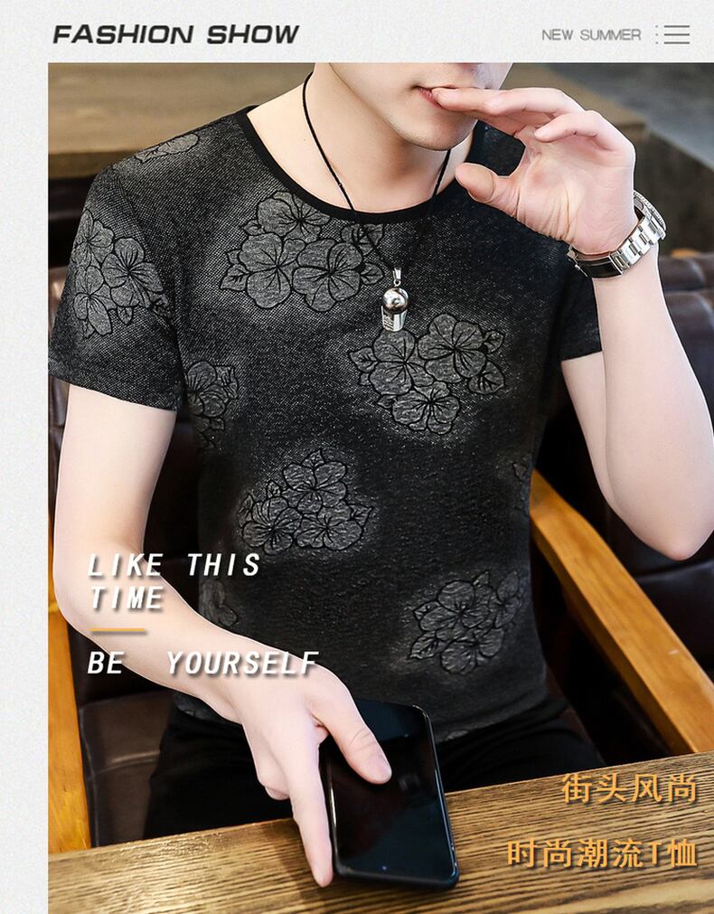 Ice silk short-sleeved t-shirt men's summer youth personality trend self-cultivation version of the student round neck printing shirt t-shirt サマー 夏物 Oネック シルク Tシャツ doushi79116037810