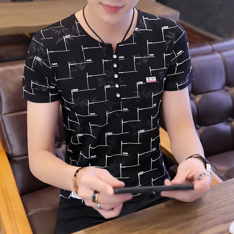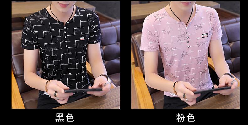 T-shirt men's short-sleeved cotton 2022 summer new version slim V-neck top clothes trend half-sleeve floral t-shirt コットン サマー 夏物 花柄 Vネック スリム Tシャツ doushi30258105914