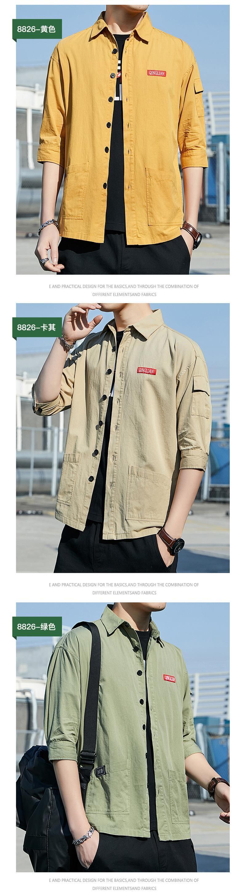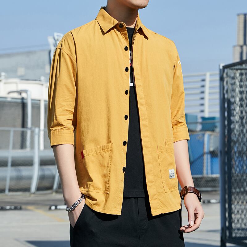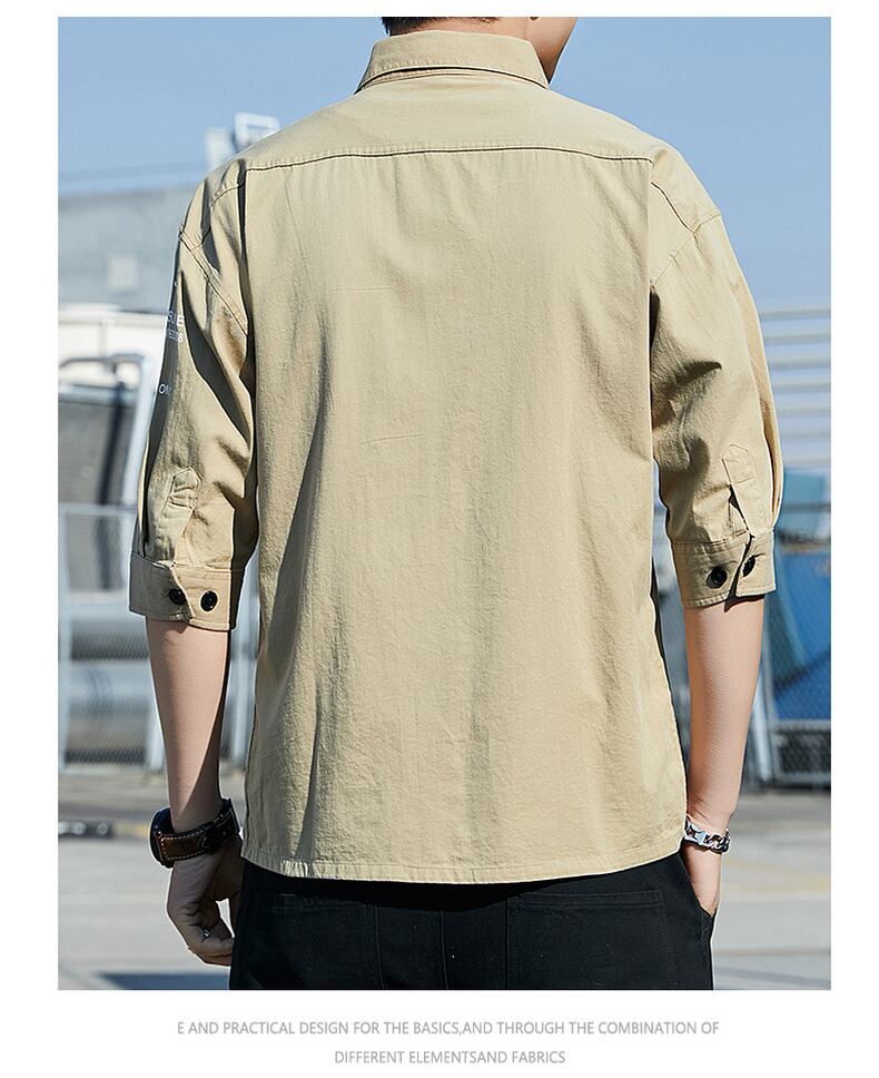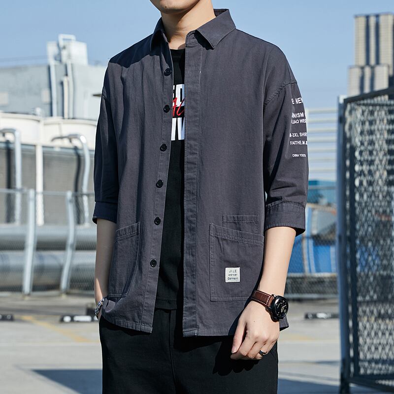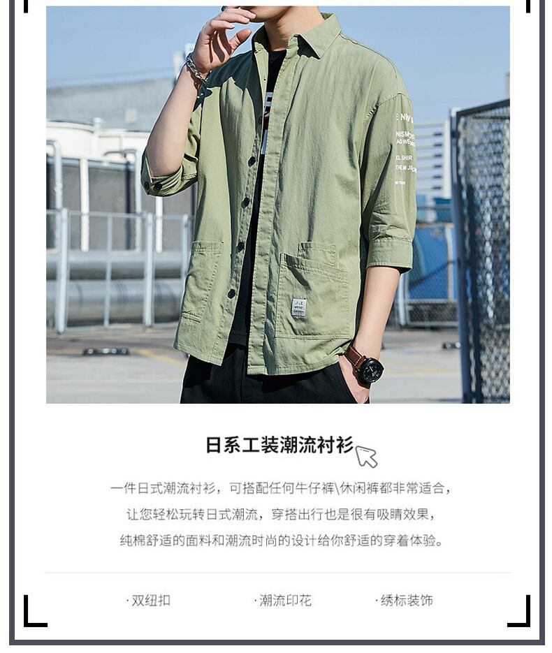 Shirt men's short-sleeved version trend 2022 new summer loose ruffian handsome three-quarter sleeve men's shirt tooling jacket サマー 夏物 doushi67500819031
