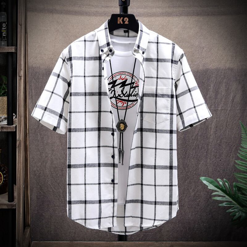 Men's short-sleeved plaid shirt casual 2022 new trendy half-sleeved summer lapel t-shirt men's カジュアル サマー 夏物 Tシャツ doushi98446811718