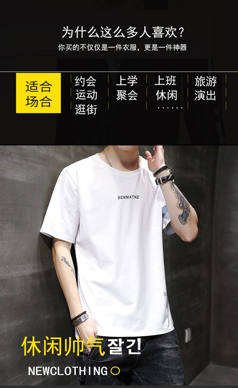 Short-sleeved T-shirt men's white t-shirt half-sleeved body blood trend ice silk men's cotton tide brand clothes summer ホワイト コットン サマー 夏物 シルク Tシャツ doushi72135296466