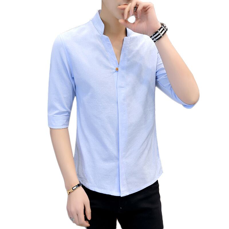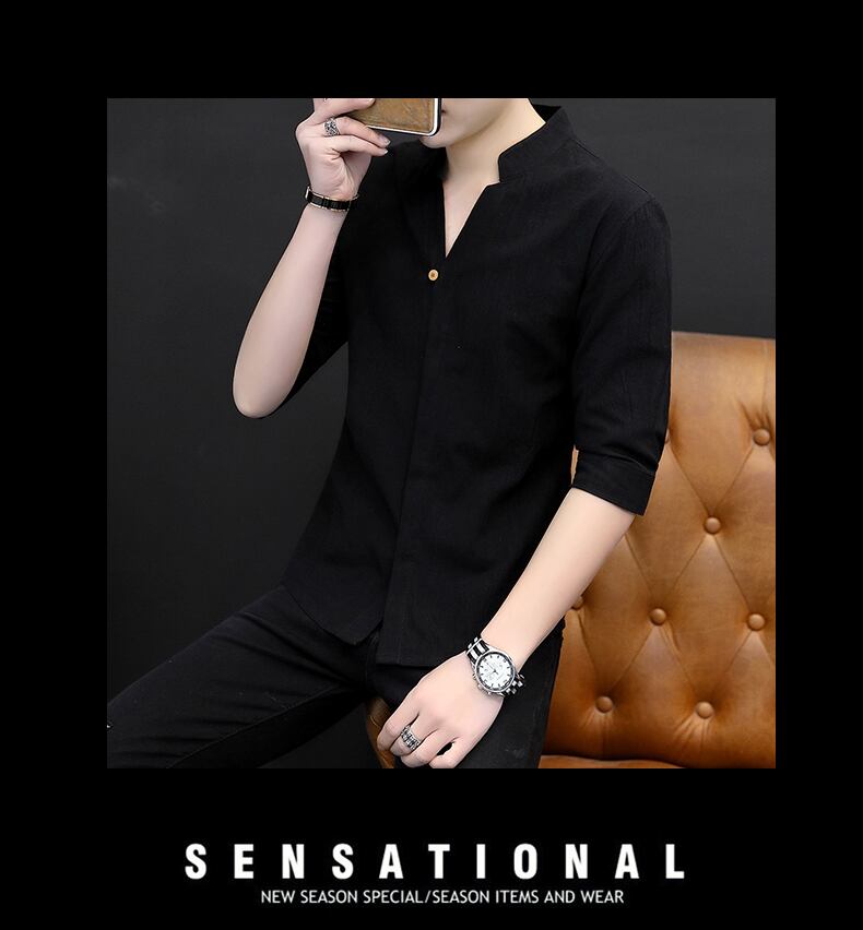 Men's Chinese style cotton long-sleeved shirt version self-cultivation stand-up collar three-quarter sleeve inch shirt summer casual retro Tang suit ロング コットン レトロ カジュアル サマー 夏物 doushi96676922019