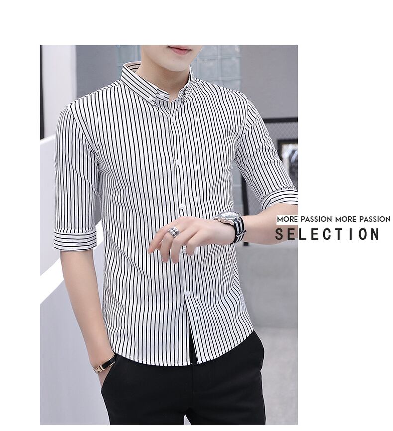 Three-quarter-sleeve shirt men's summer slim casual mid-sleeve striped five-point short-sleeved shirt version of the tide brand men's clothing カジュアル サマー 夏物 ストライプ スリム doushi57387997540
