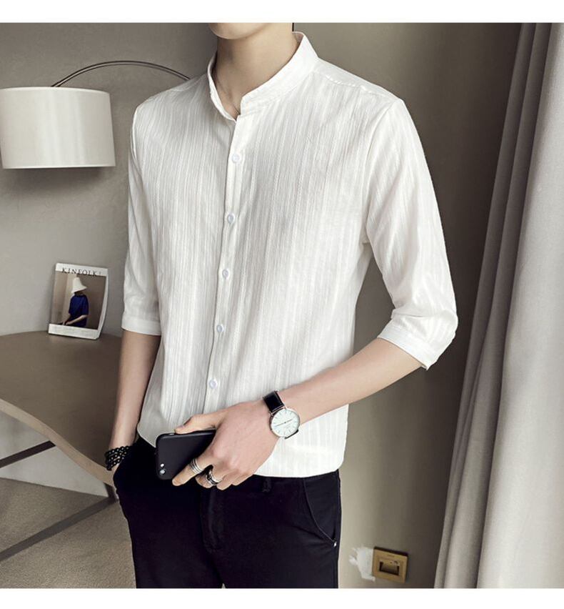 White shirt men's version of the slim seven-point short-sleeved summer thin inch shirt trendy and handsome British mid-sleeve stand-up collar shirt ホワイト サマー 夏物 スリム doushi91983180202
