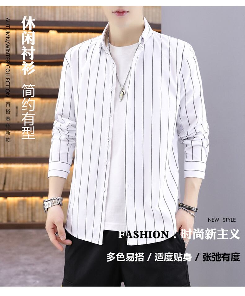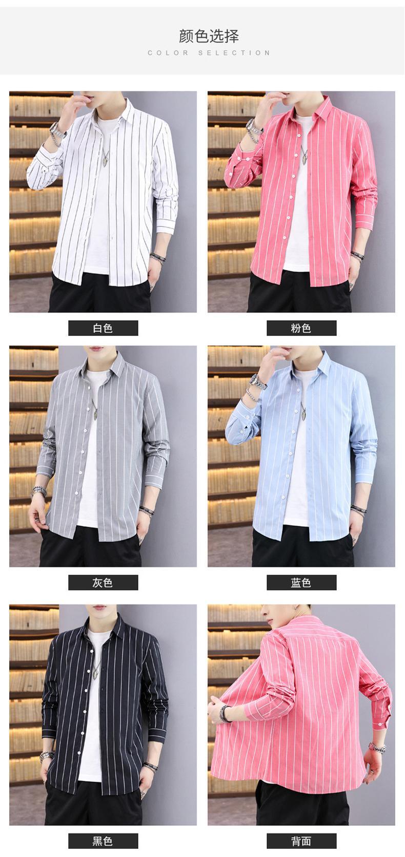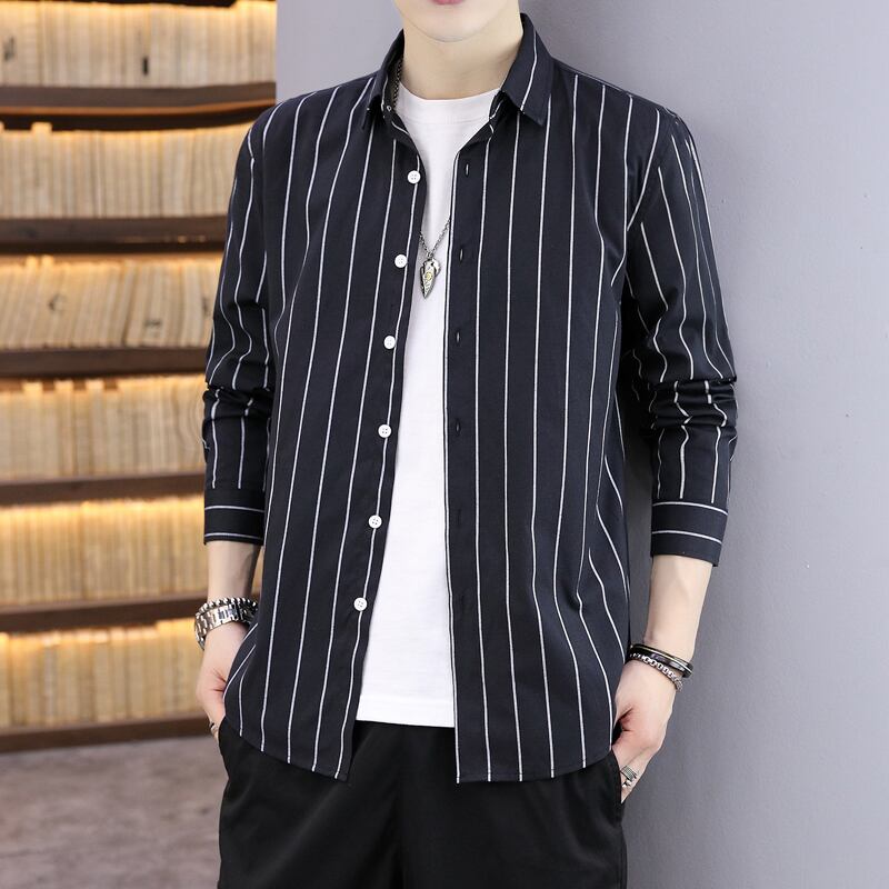 Shirt men's long-sleeved striped coat top clothes autumn trend handsome spring thin shirt men's trend ロング スプリング 春物 オータム 秋物 ストライプ doushi77635931994