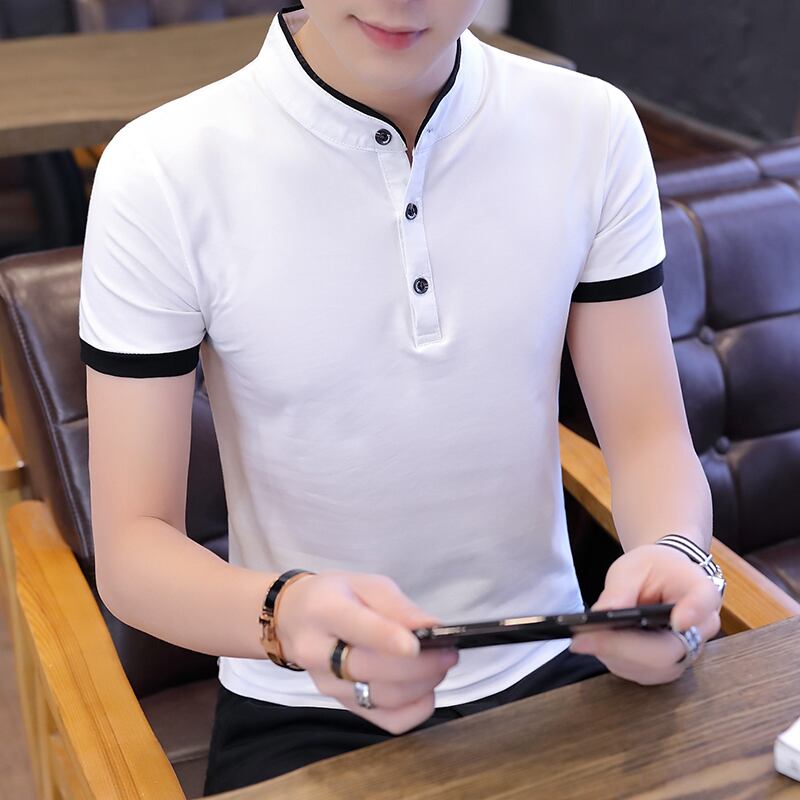 Men's Short Sleeve T-Shirts Summer Slim Fit Standing Collar Half Sleeves Thin Men's POLO Shirts 2022 Trend T-Shirts ショート 半袖 ハーフスリーブ シャツ サマー 夏物 スリム Tシャツ doushi19088291513