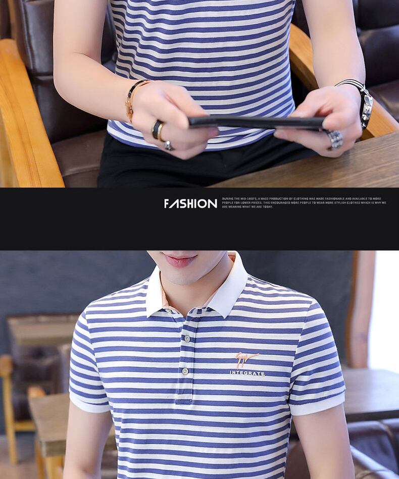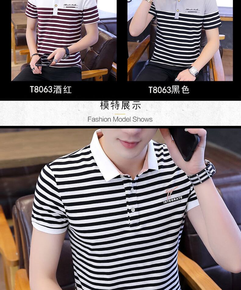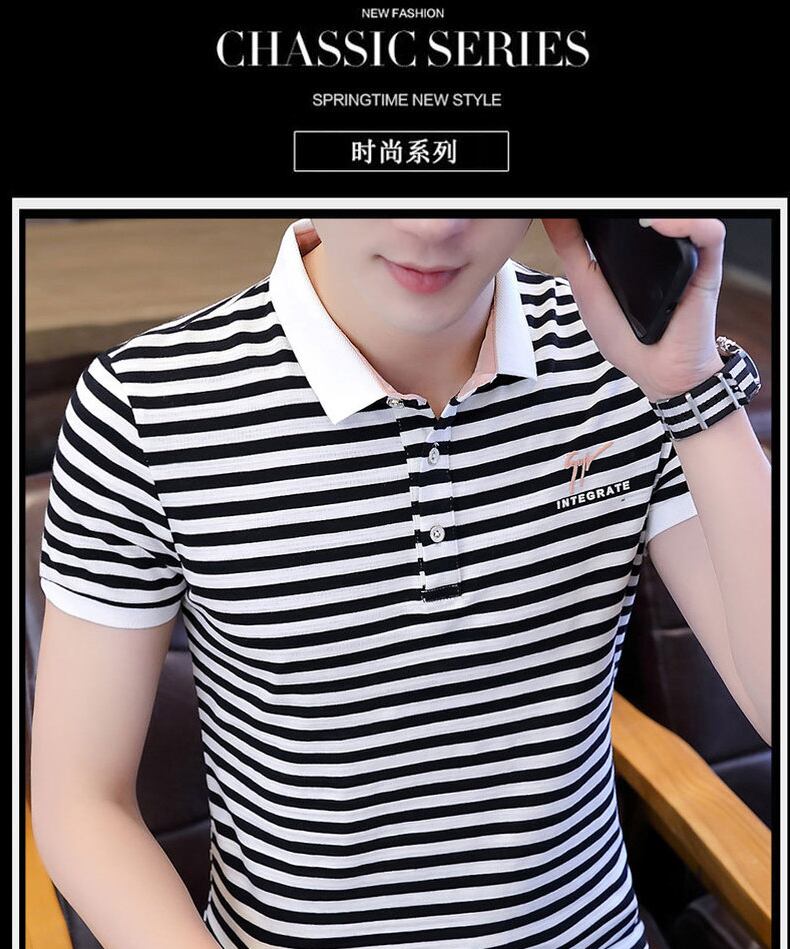 Men's Short Sleeve T-Shirt 2022 Summer Black and White Striped POLO Shirt Trend Men's Shirt Collar Clothes ショート ホワイト ブラック 半袖 ハーフスリーブ サマー 夏物 ストライプ Tシャツ doushi72635694153