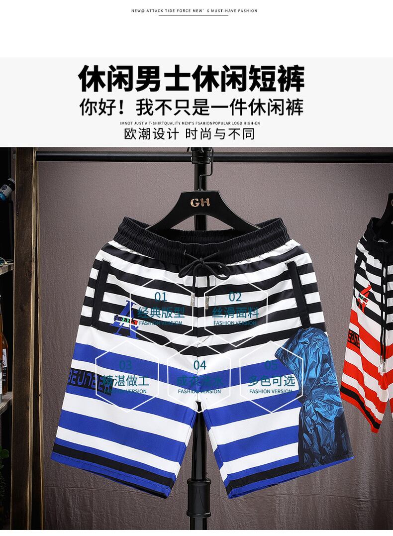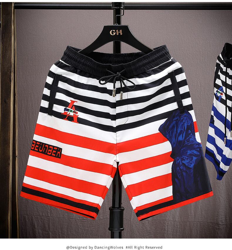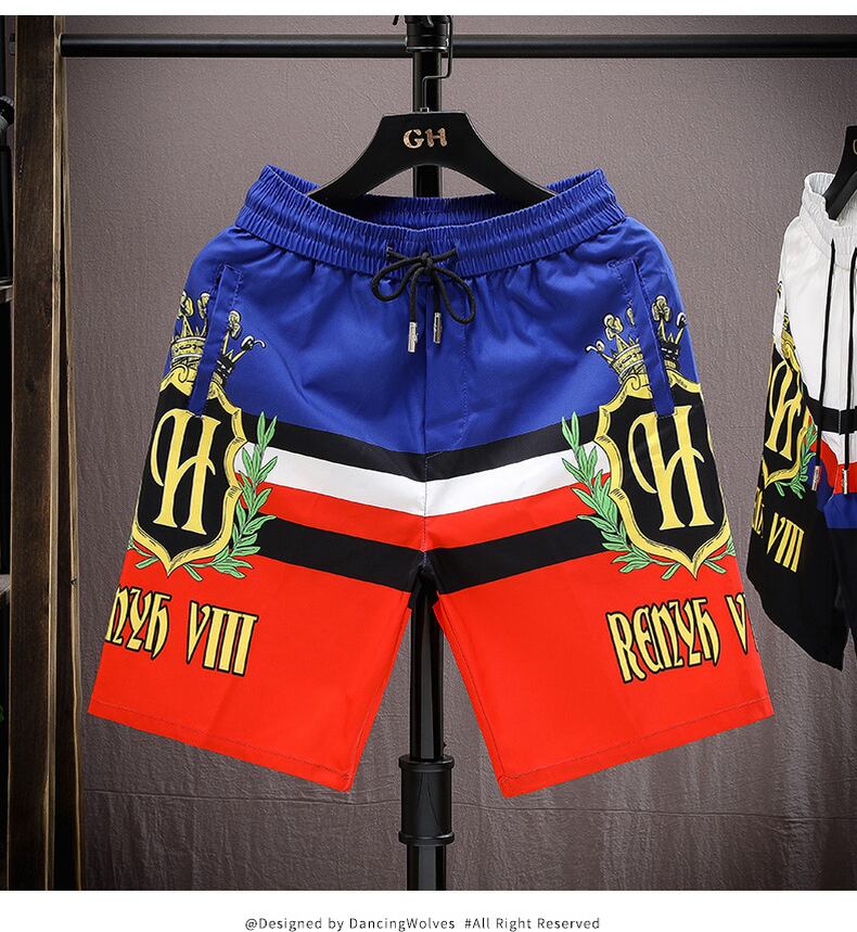 European station summer new shorts men's personality fashion printing net red tide brand loose and quick-drying five-point beach men's tide レッド サマー 夏物 ビーチ ショーツ ブルマー ヨーロピアン doushi70542058038