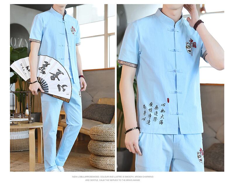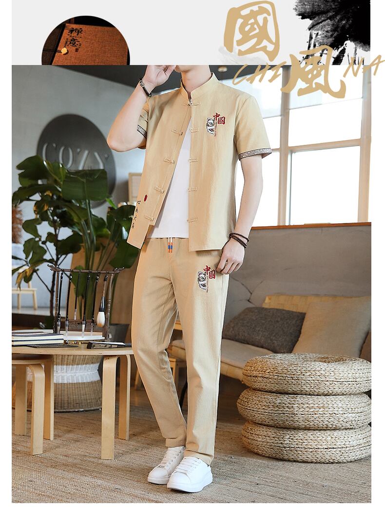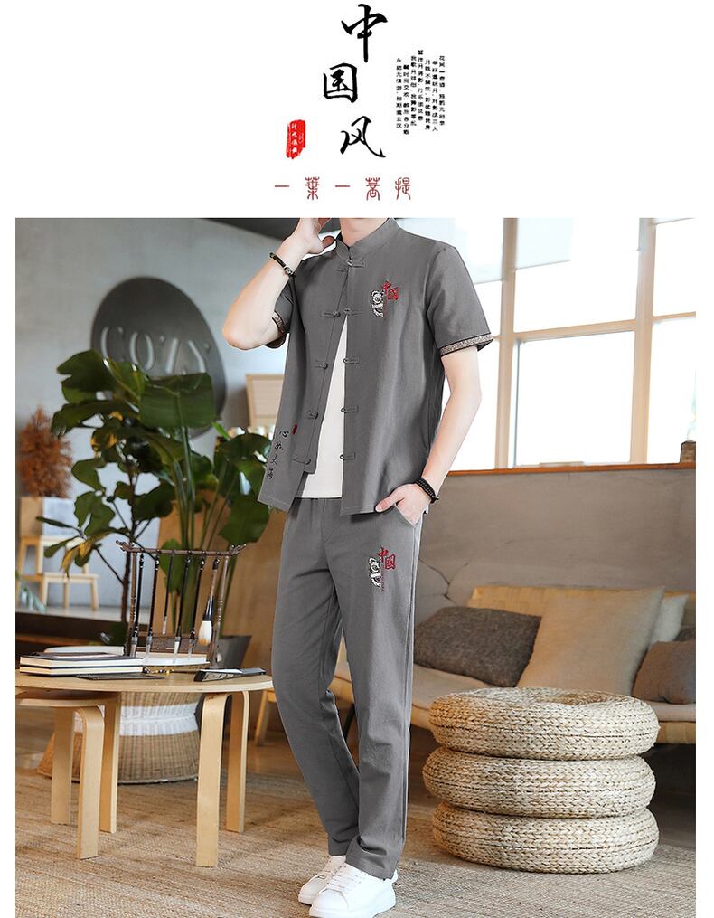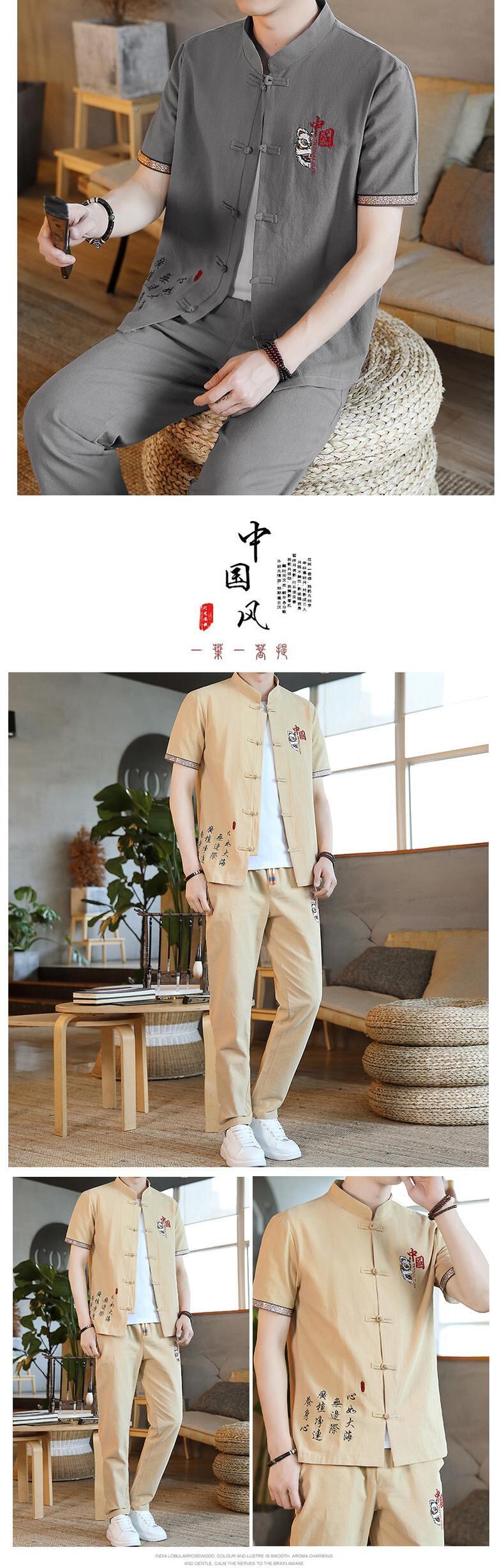 Summer linen suit men's Tang suit casual Chinese style cotton and linen short-sleeved t-shirt 2022 new v Hanfu two-piece suit コットン カジュアル サマー 夏物 Tシャツ doushi90288731643