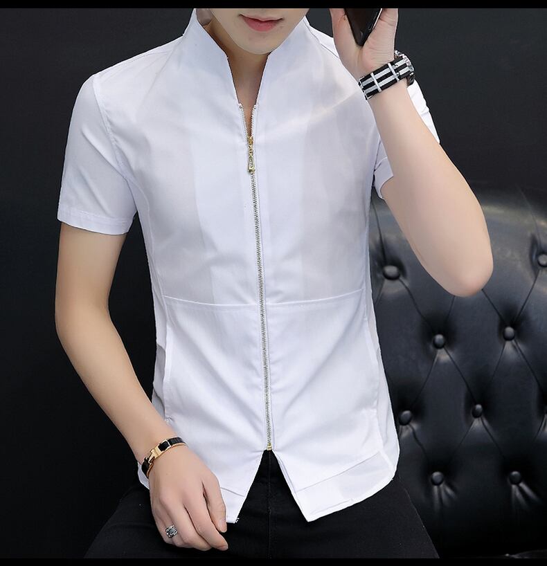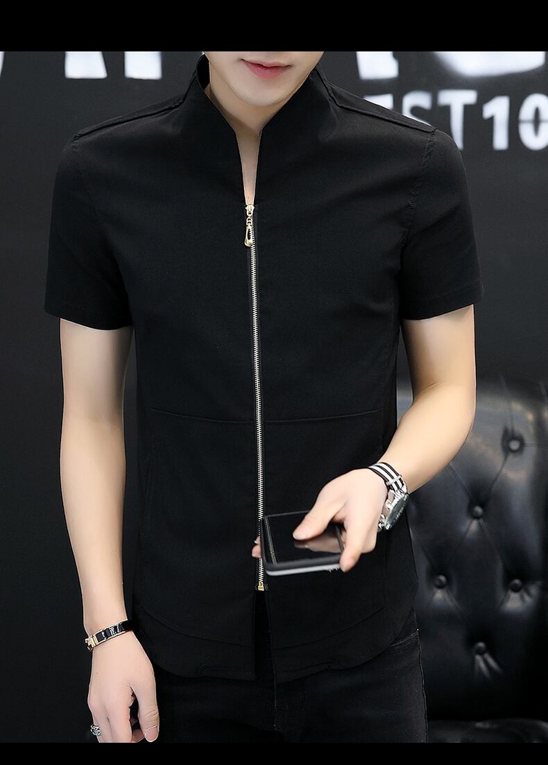 Chinese style men's cardigan shirt stand collar thin summer ice silk shirt men's short-sleeved slim trendy handsome inch shirt カーディガン サマー 夏物 スリム シルク doushi74655282654