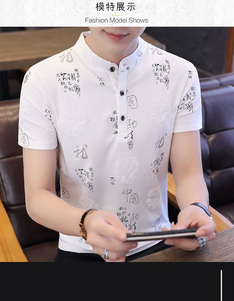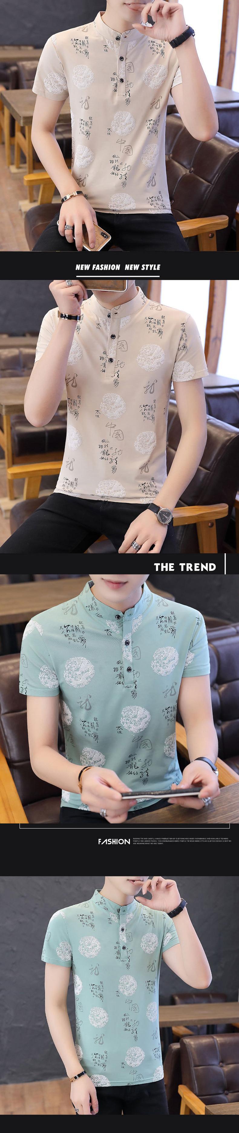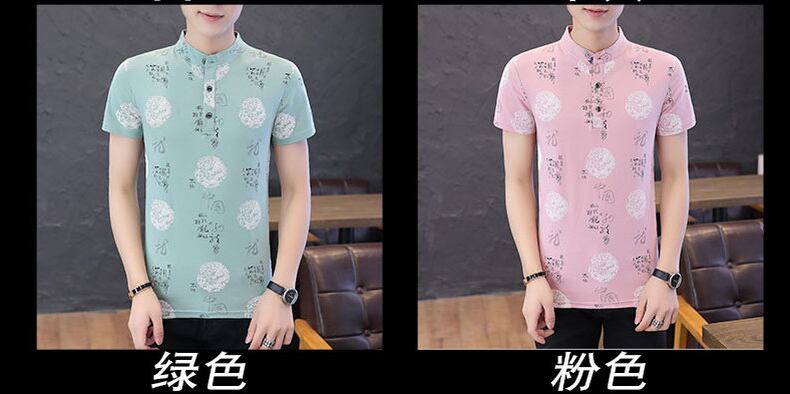 Chinese style cotton stand-up collar Polo shirt men's version slim summer new half-sleeved youth short-sleeved T-shirt trend コットン サマー 夏物 スリム Tシャツ doushi14924641914