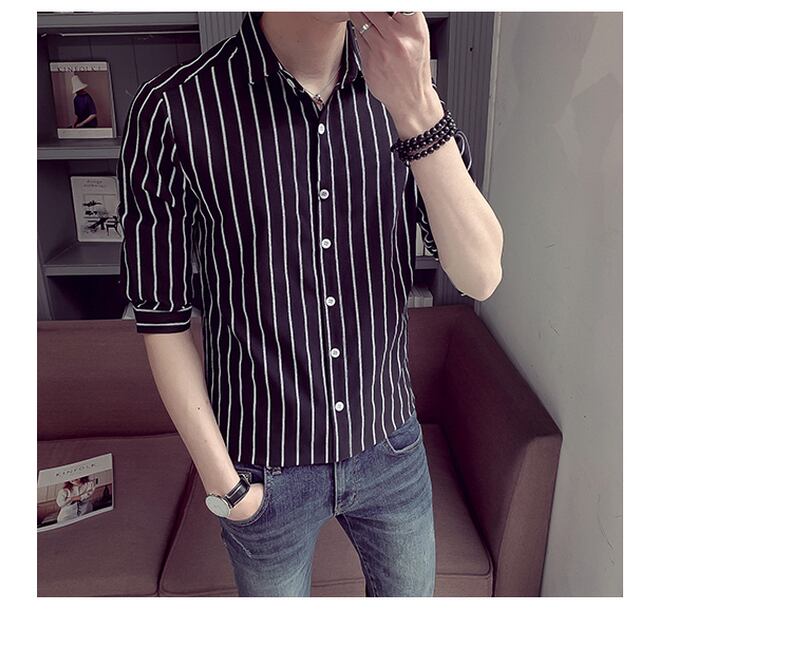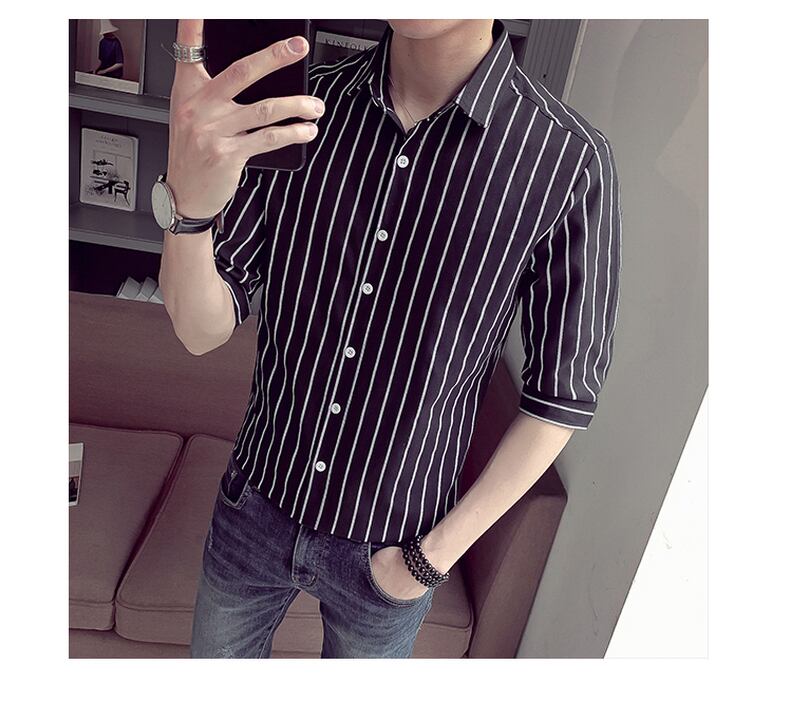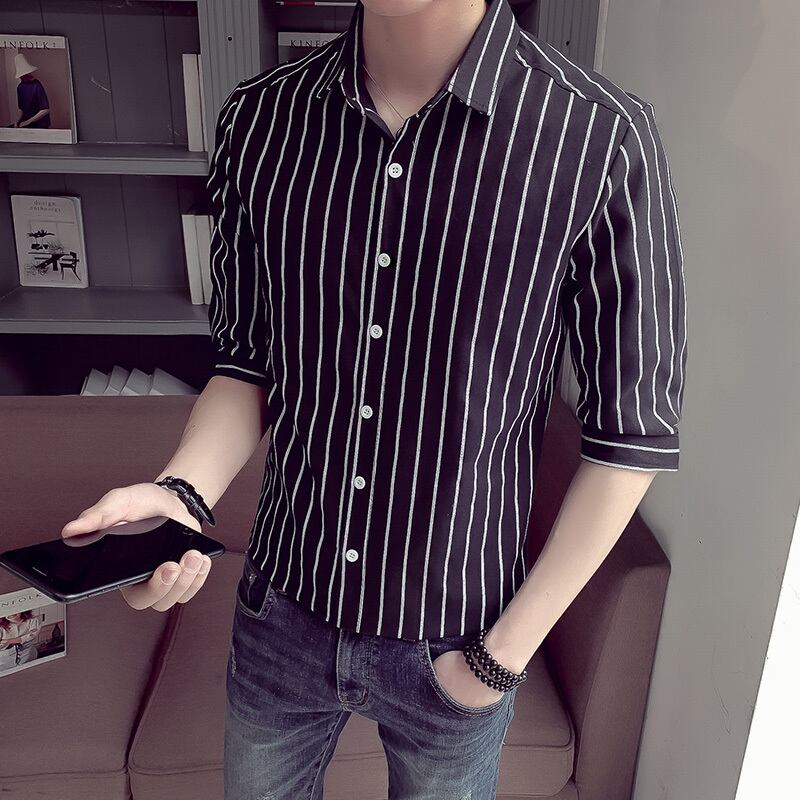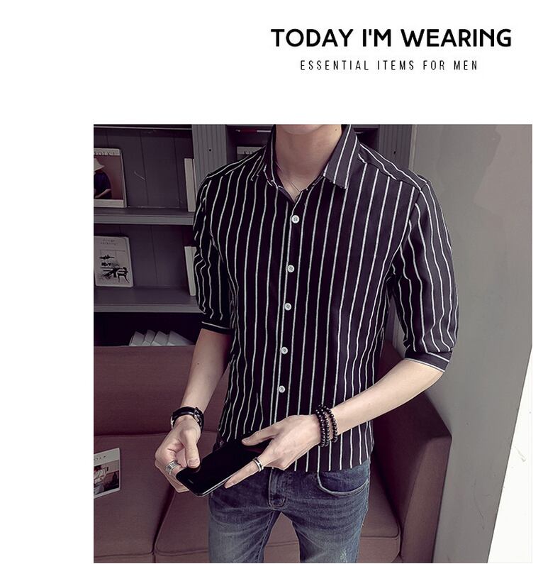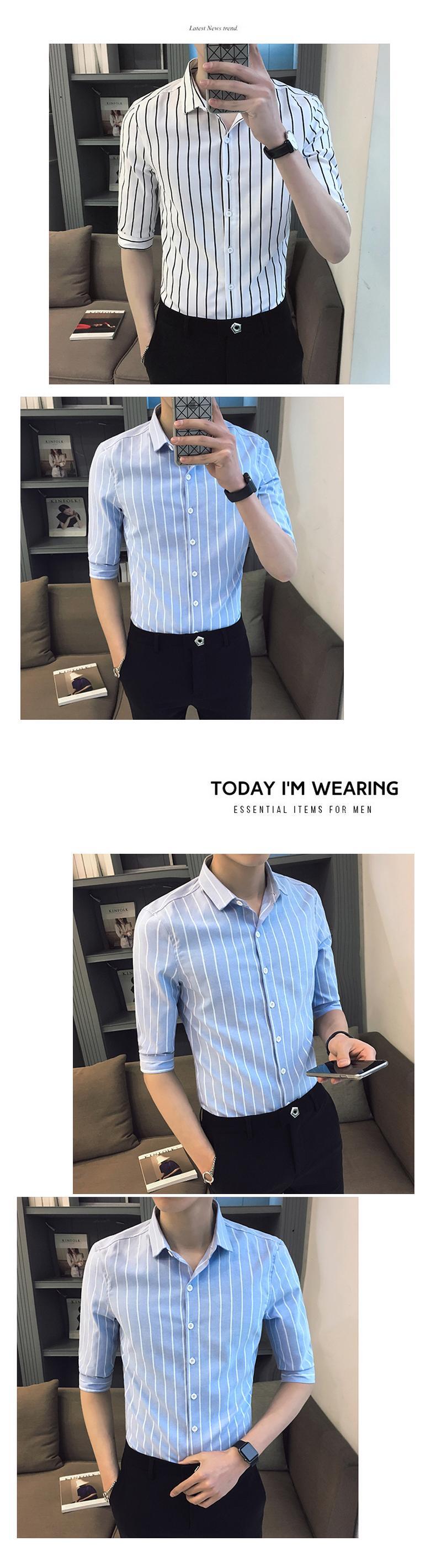 Striped shirt men's five-point sleeve summer slim short-sleeved shirt men's British business casual medium-sleeve inch shirt カジュアル サマー 夏物 ストライプ スリム doushi20634007811