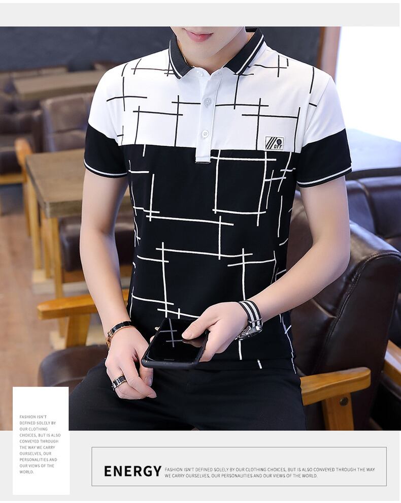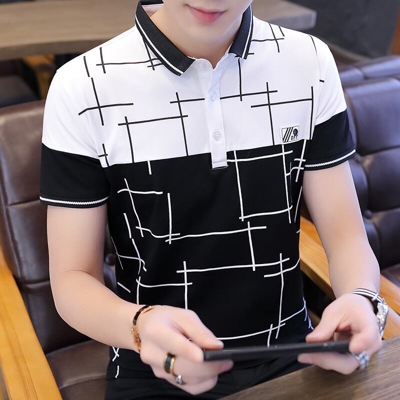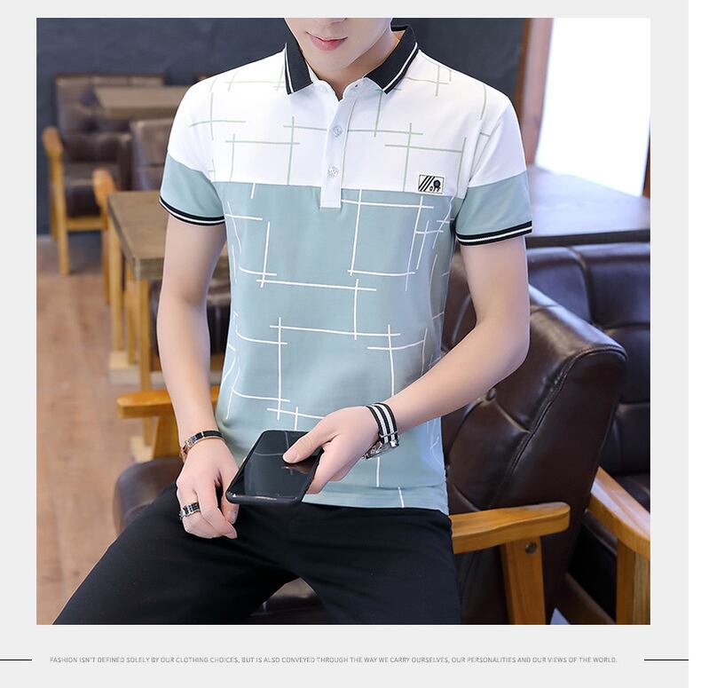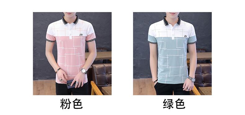 Summer short-sleeved t-shirt men's version of the trend men's polo shirt tide brand lapel half sleeve casual plaid shirt 半袖 ハーフスリーブ カジュアル サマー 夏物 Tシャツ doushi93285755572