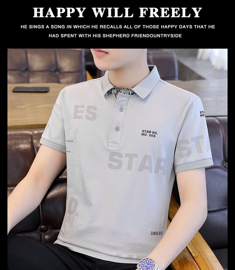 Short-sleeved t-shirt men's 2022 new trendy brand trend cotton shirt collar men's polo shirt summer slim top コットン サマー 夏物 スリム Tシャツ doushi23084042329