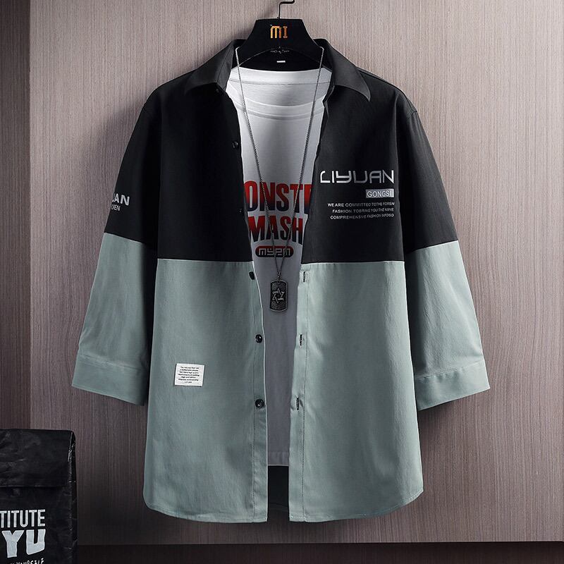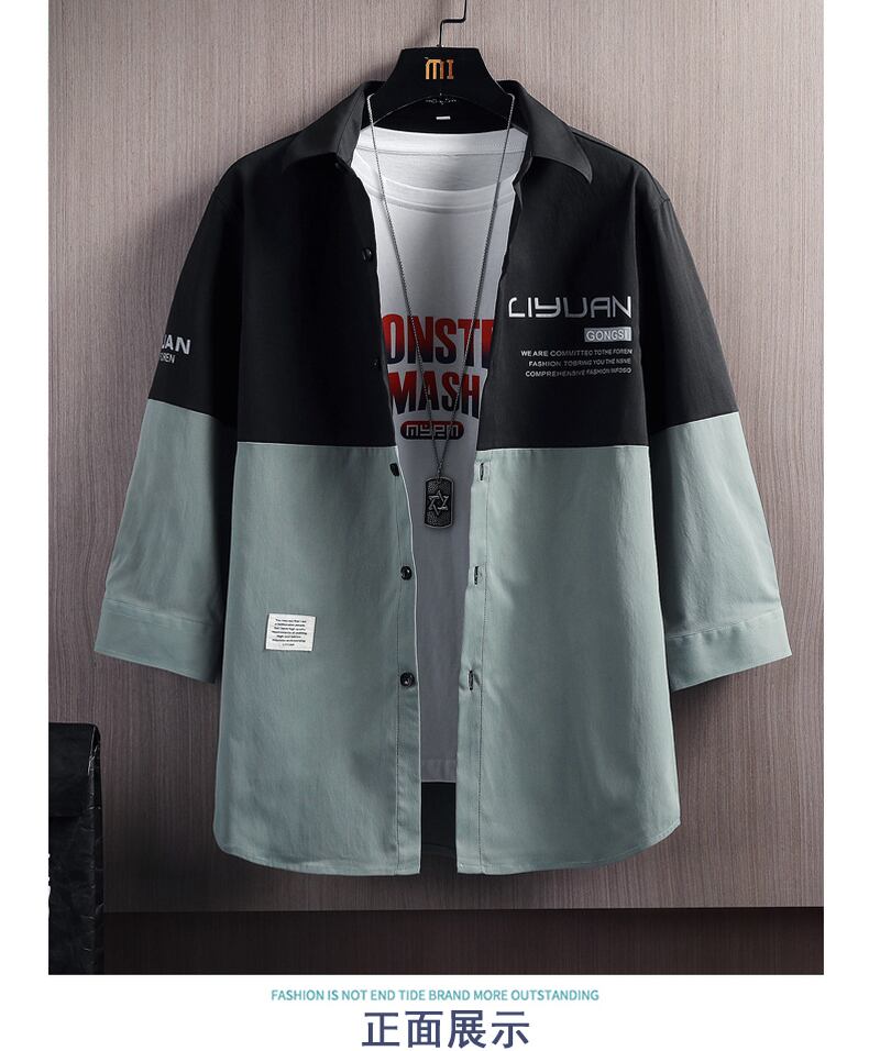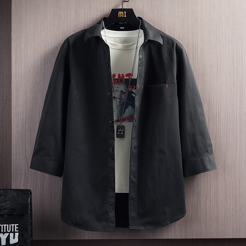 Men's casual short-sleeved shirt summer tide brand trend Hong Kong style ese three-quarter sleeve tooling shirt thin coat カジュアル サマー 夏物 doushi61667135248