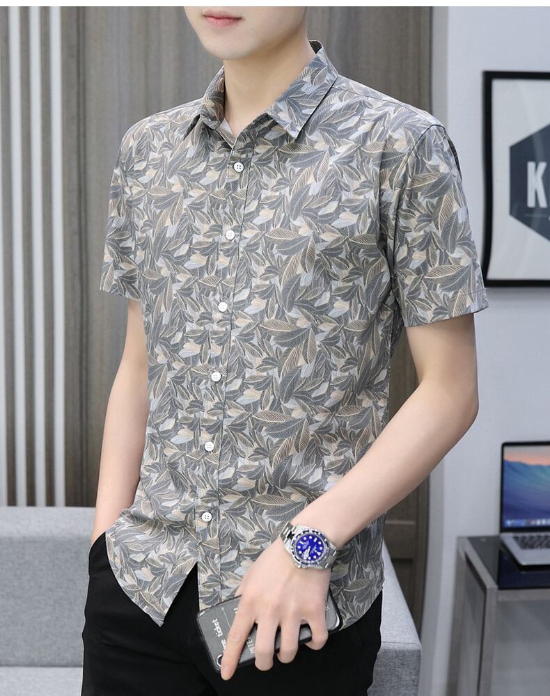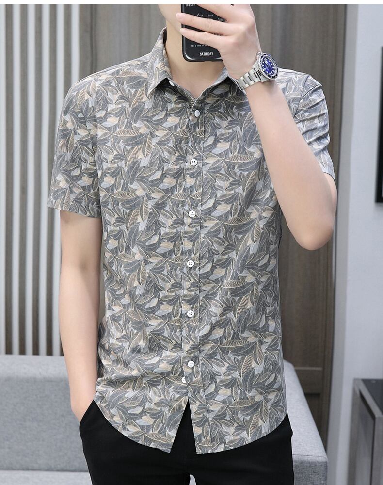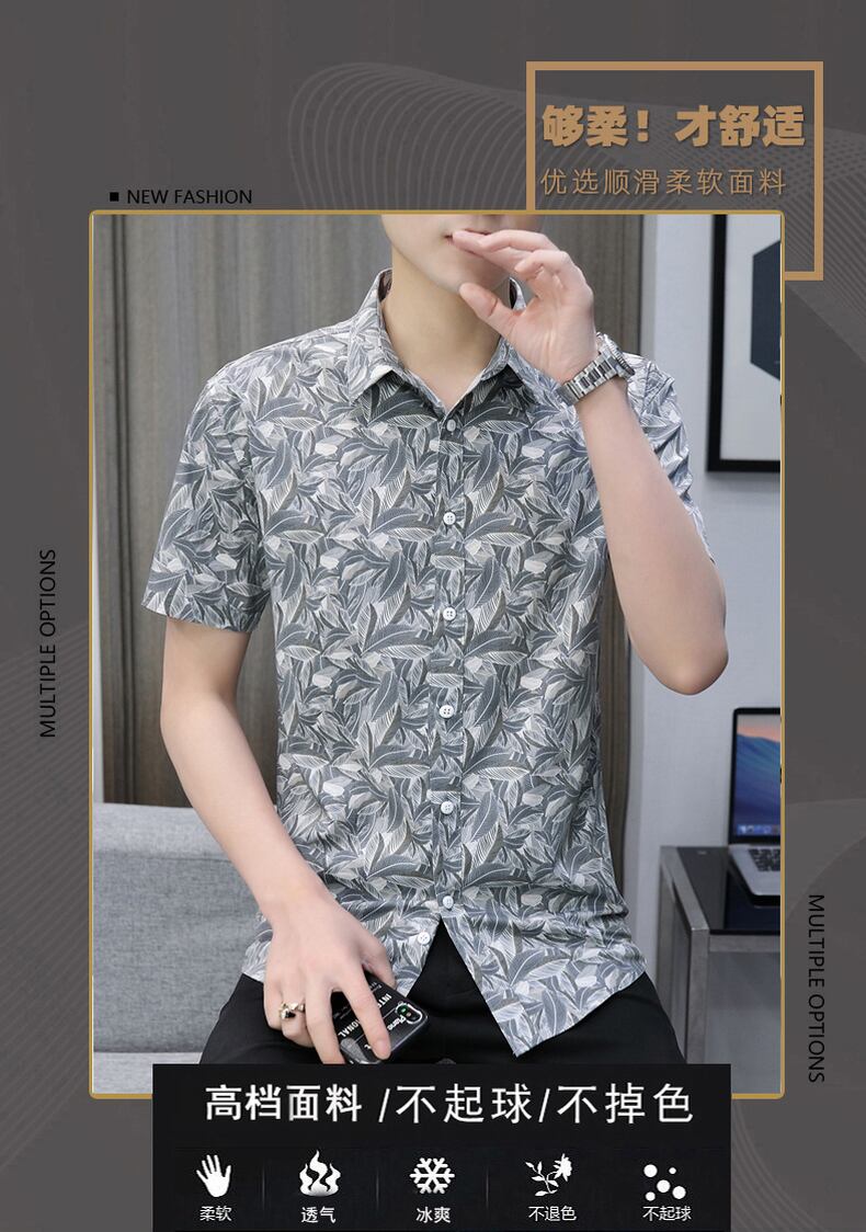 Summer short-sleeved t-shirt shirt men's version of the trend handsome ice silk self-cultivation youth casual business shirts summer clothes カジュアル シャツ サマー 夏物 シルク Tシャツ doushi39942679861