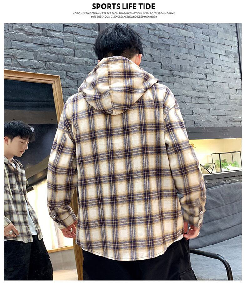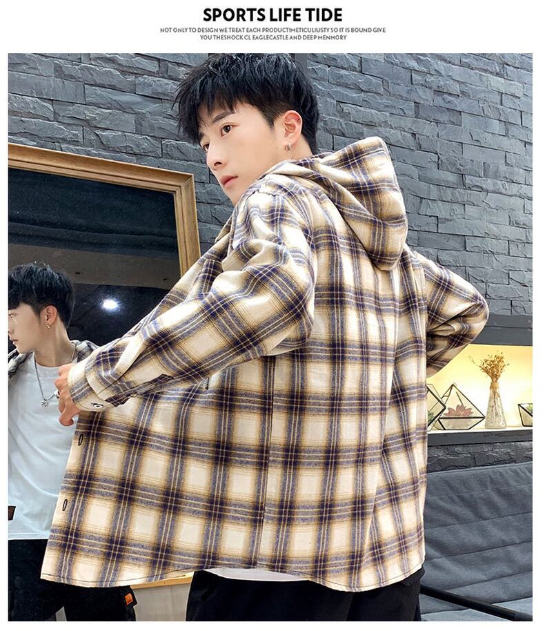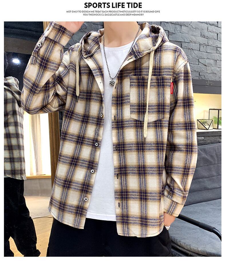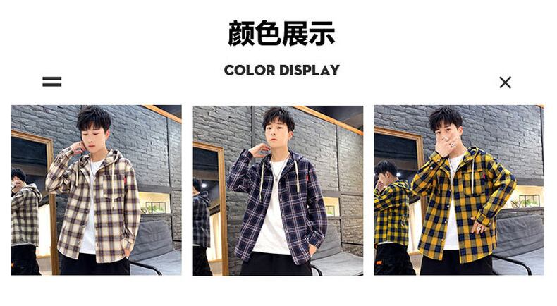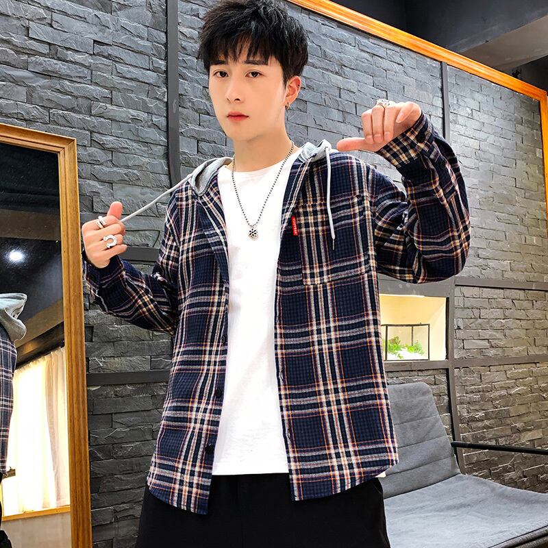 Spring plaid shirt male version youth hooded long-sleeved shirt junior high students spring and autumn thin coat ロング スプリング 春物 オータム 秋物 doushi55844796221