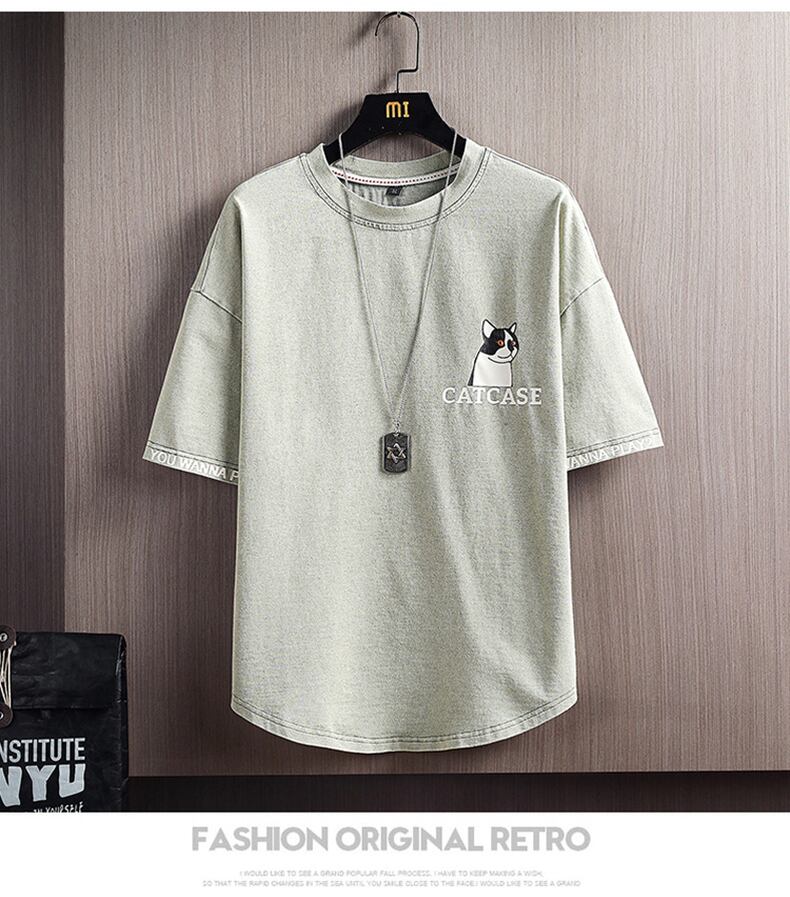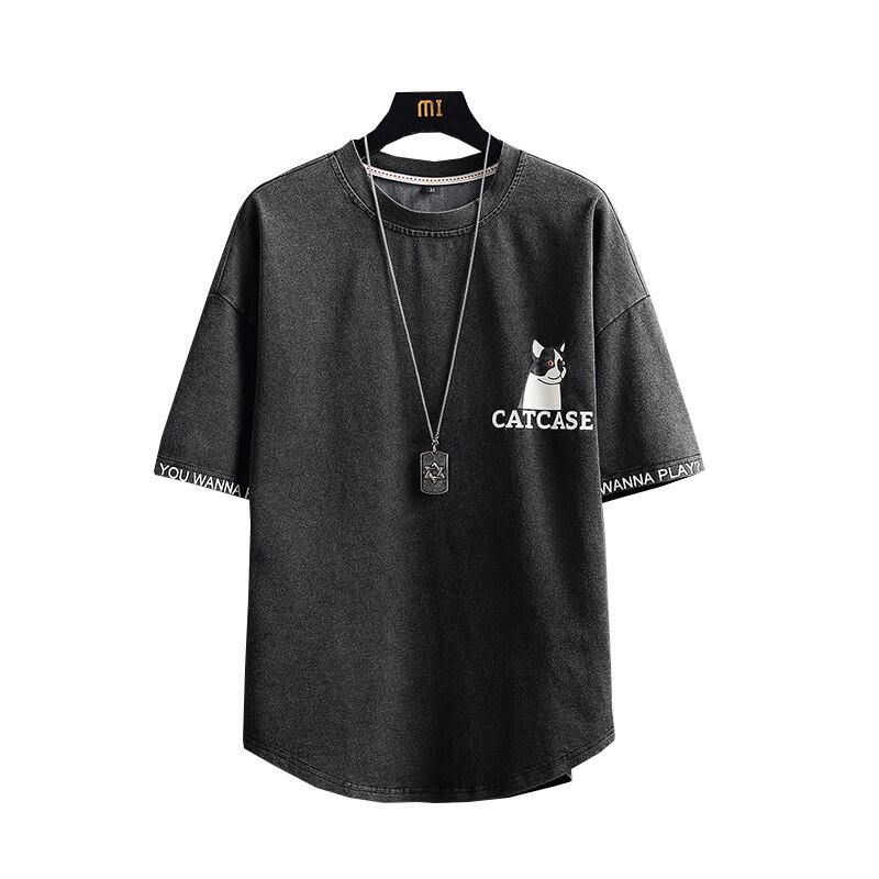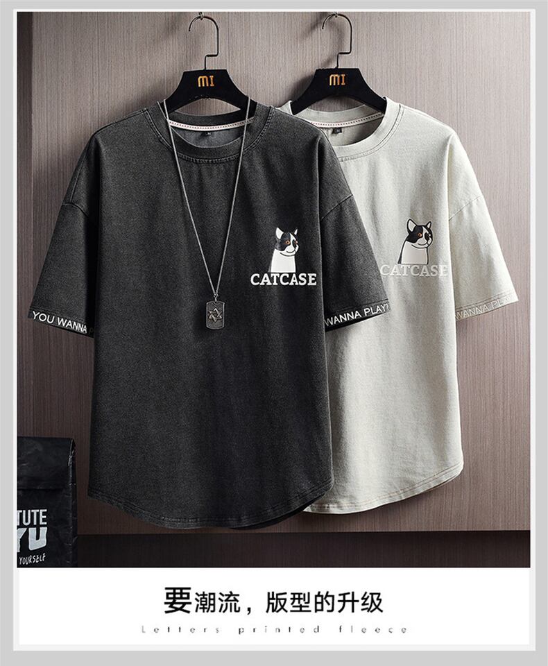 Summer men's Hong Kong style casual denim short-sleeved T-shirt wild youth fashion version of the tide brand top super cec カジュアル サマー 夏物 Tシャツ doushi72658331907