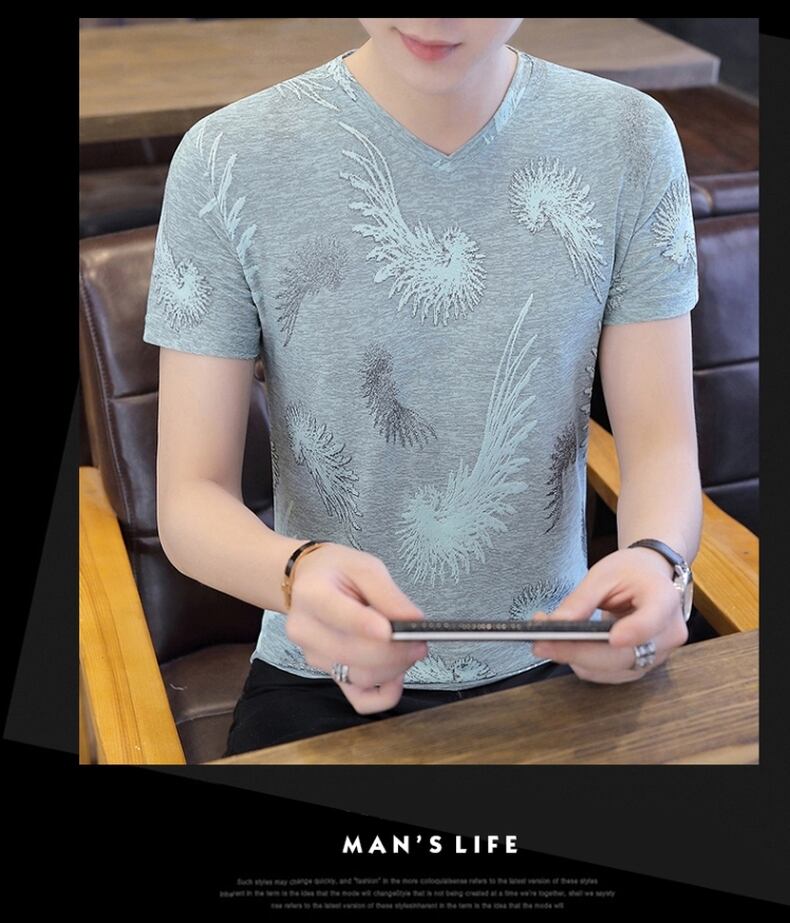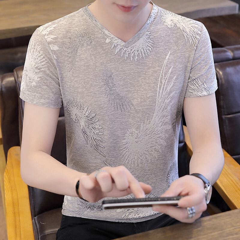 Ice silk short-sleeved t-shirt men's summer 2022 new trendy brand V-neck half-sleeved fashion handsome and popular men's bottoming shirt サマー 夏物 Vネック シルク Tシャツ doushi12080967020