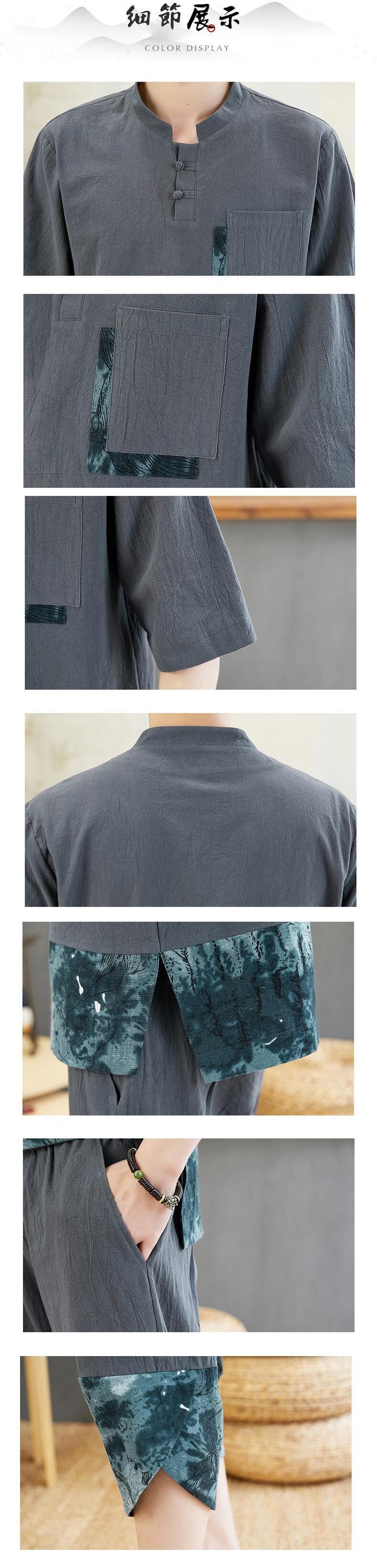 Summer Chinese style men's linen suit men's Hanfu cotton and linen ancient style short-sleeved t-shirt Tang suit top costume clothes T コットン サマー 夏物 Tシャツ doushi52230812624
