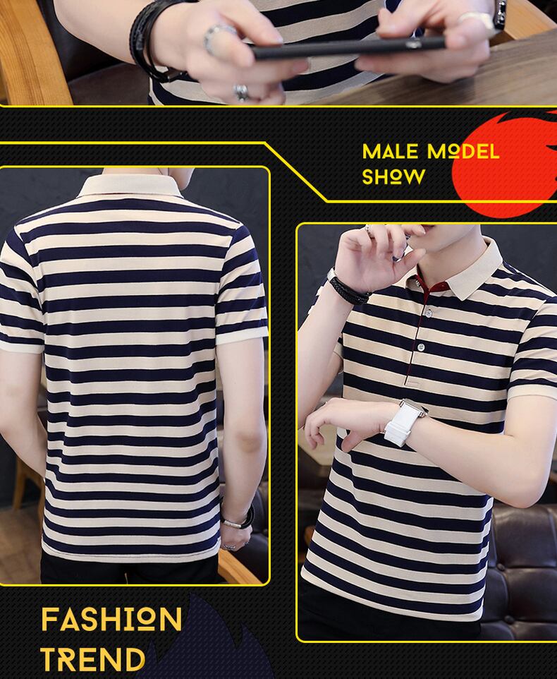 Summer short-sleeved T-shirt men's 2022 new slim-fit lapel half-sleeve t-shirt trend striped high-end Paul POLO shirt サマー 夏物 ストライプ Tシャツ doushi62037306518