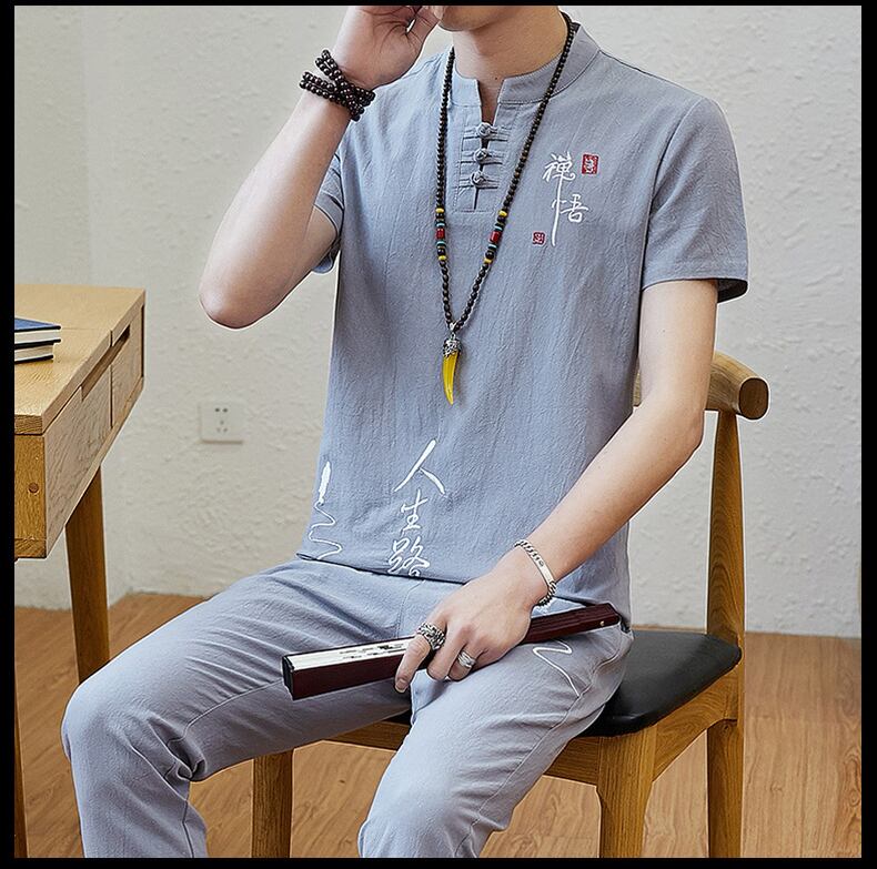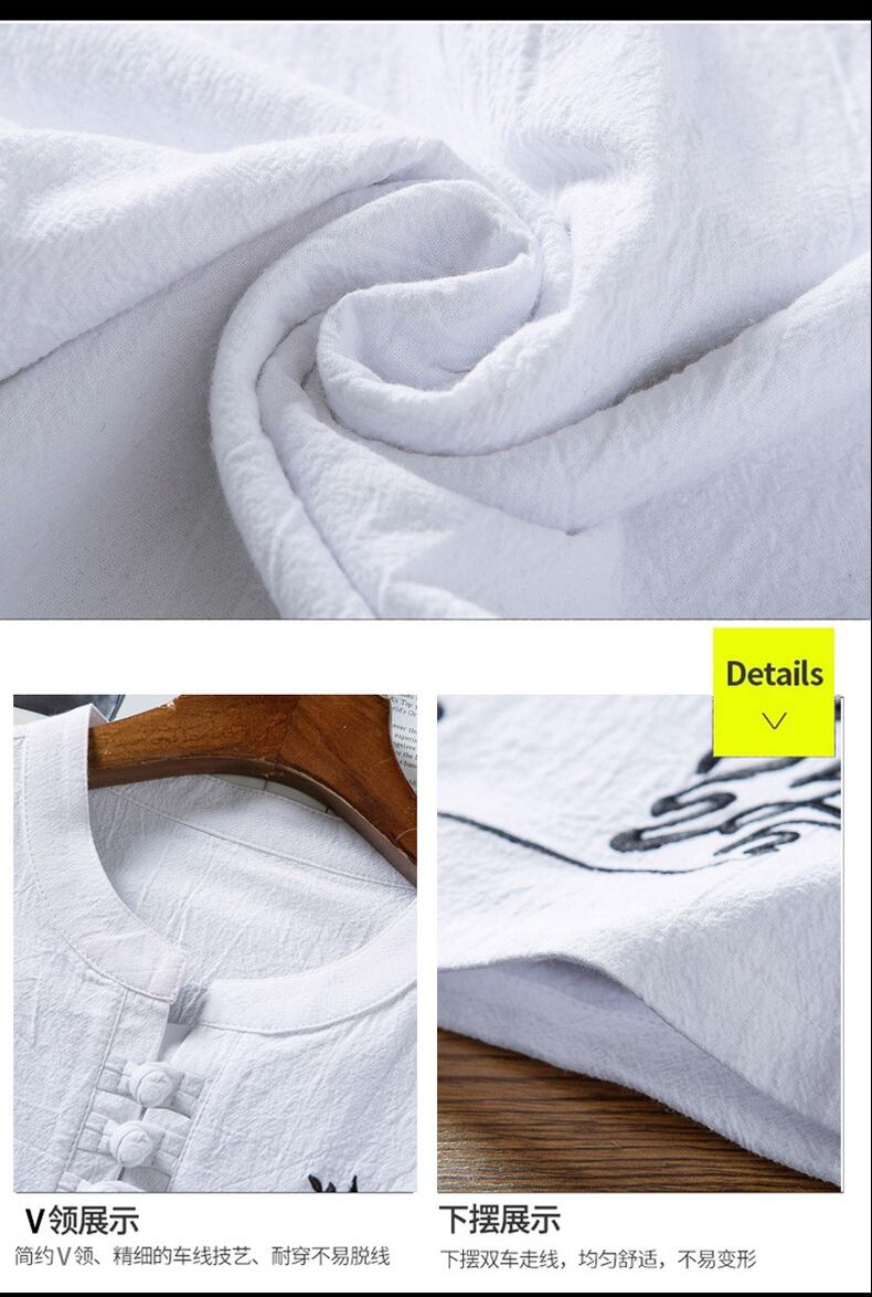 Summer Chinese style linen suit men's Hanfu cotton linen short-sleeved t-shirt men's Tang suit Zen suit men's ancient clothes v コットン サマー 夏物 Tシャツ doushi25727397544