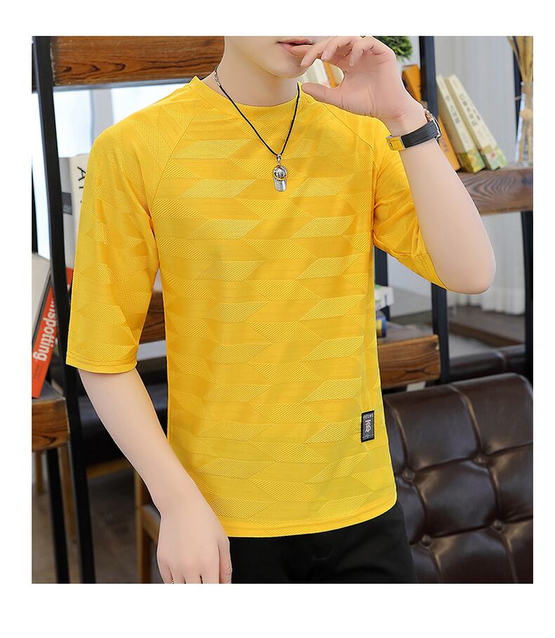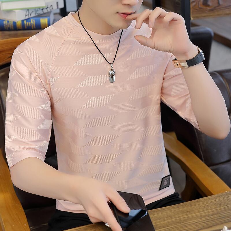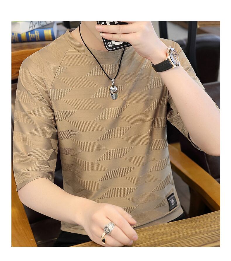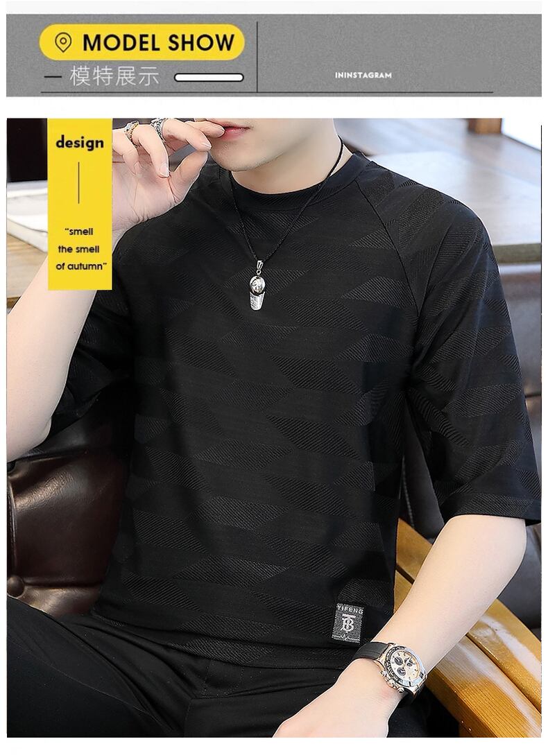 Seven-point sleeve men's ice silk personality tide brand short-sleeved t-shirt 2022 summer new five-point sleeve men's 7-point 5-point mid-sleeve サマー 夏物 シルク Tシャツ doushi46691324859