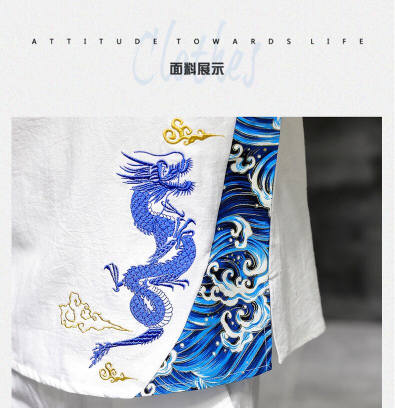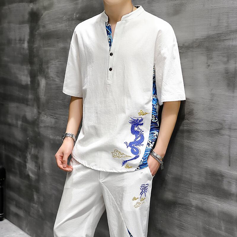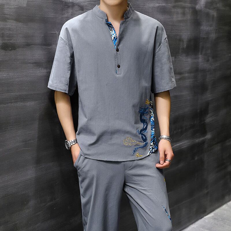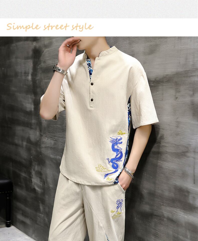 Summer men's short-sleeved t-shirt two-piece set of Chinese style men's clothing 2022 new ice silk suit ancient style linen clothes サマー 夏物 シルク Tシャツ doushi68237641689