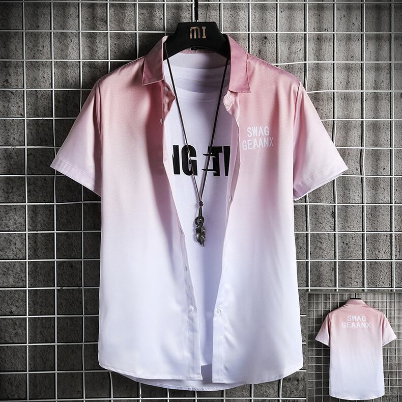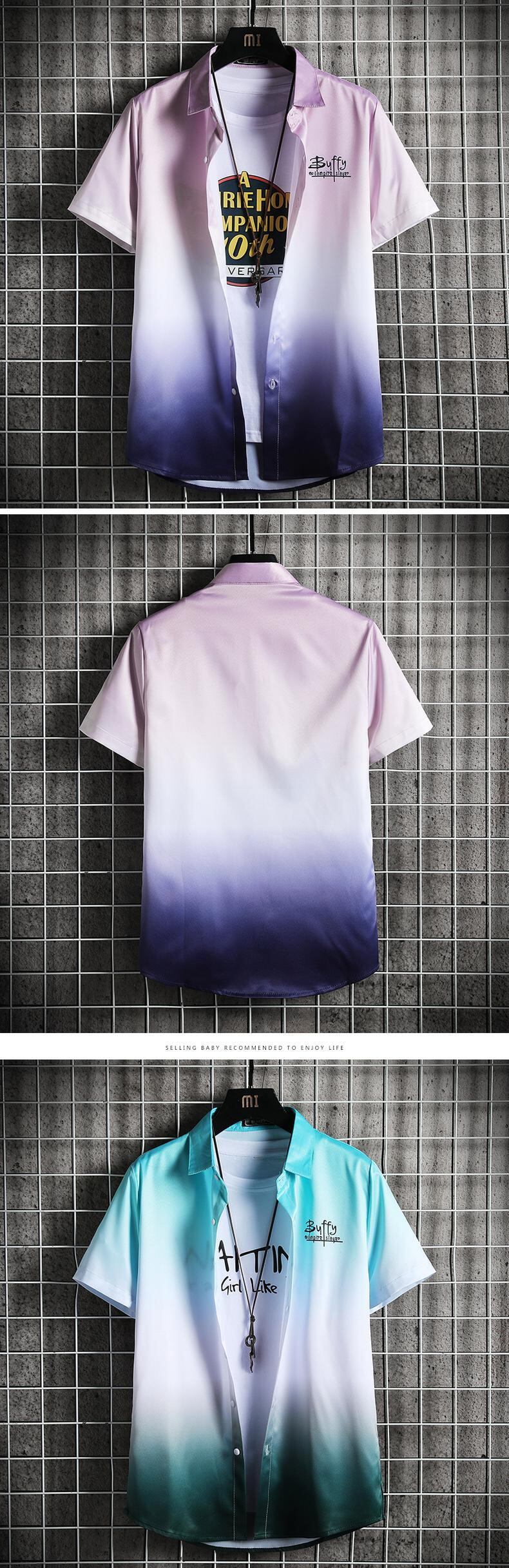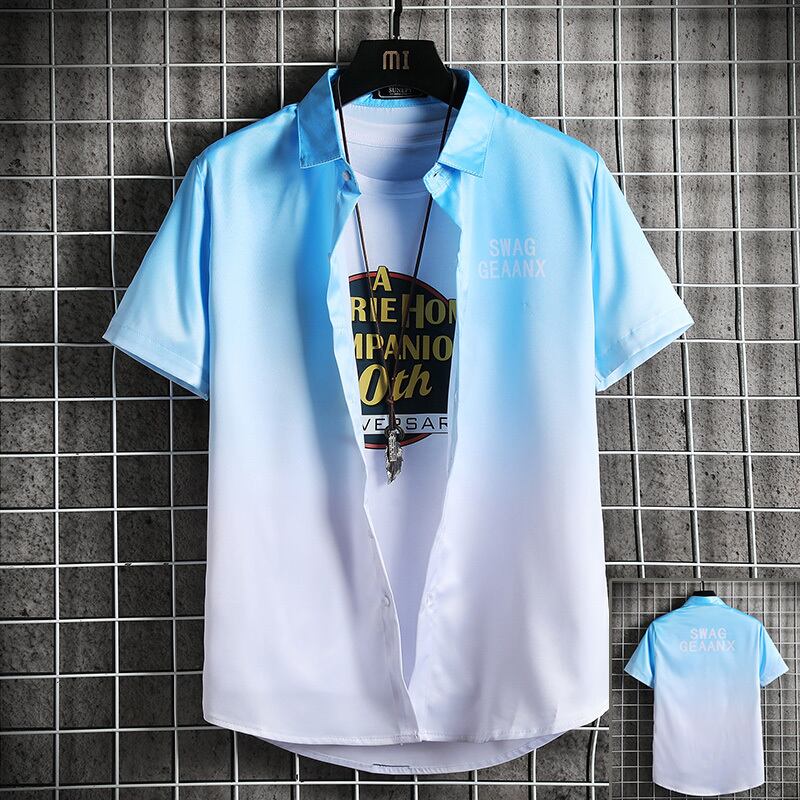 Summer short-sleeved shirt men's version trendy handsome middle students casual shirts youth men's inch shirt gradient color カジュアル シャツ サマー 夏物 doushi63149540897