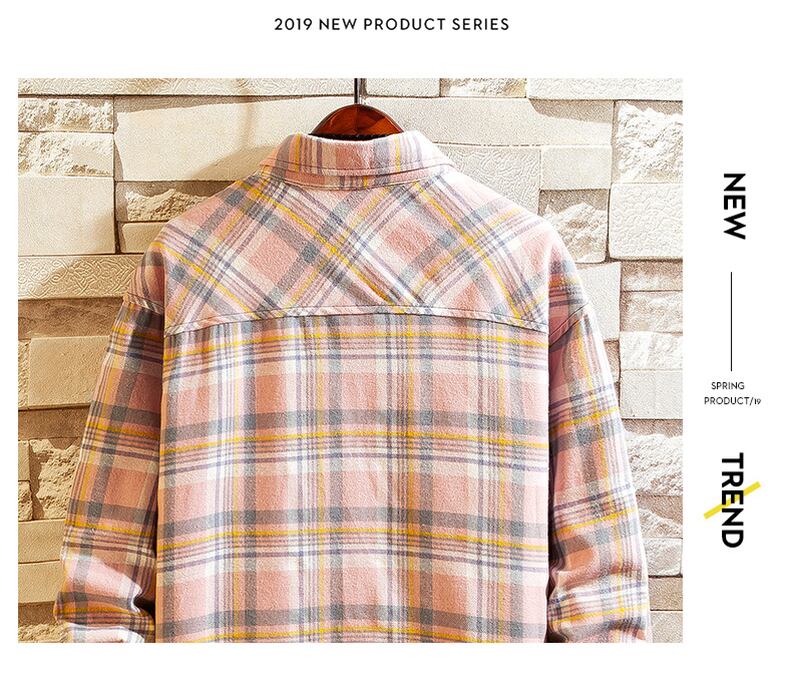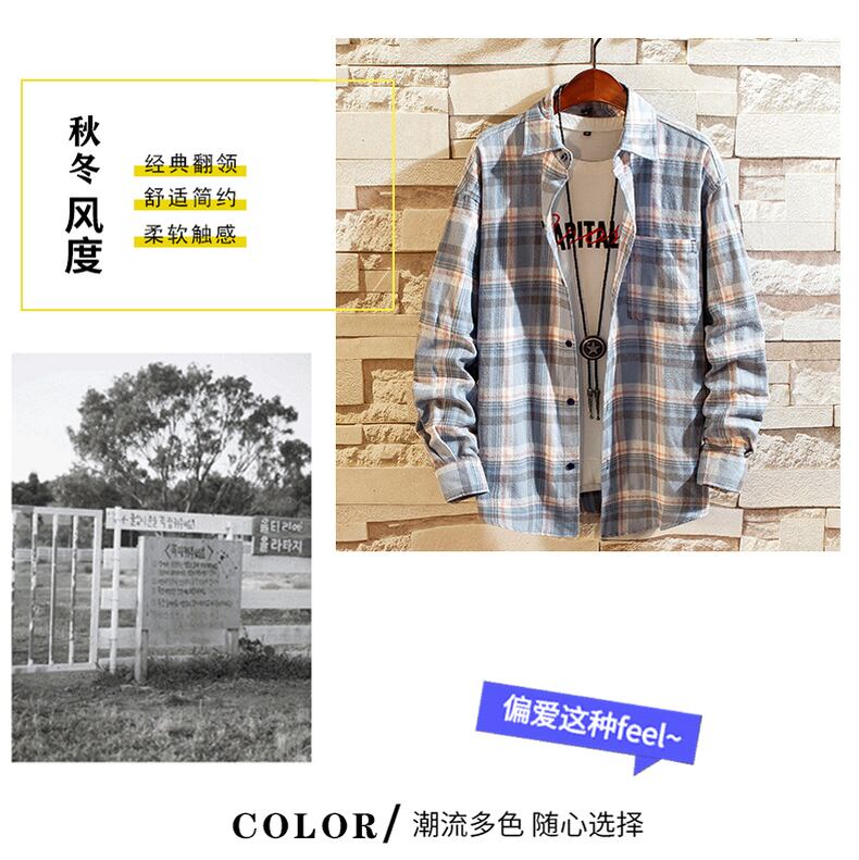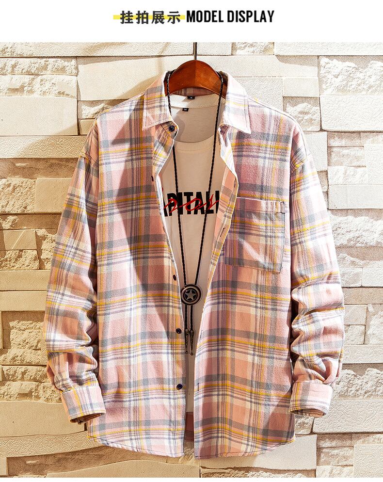 Spring and Autumn Men's Cotton Shirts Youth Plaid Inch Shirts Long Sleeve Gowns Version Loose Plus Size Men's ロング コットン 長袖 シャツ 大きめサイズ スプリング 春物 オータム 秋物 doushi96211422430