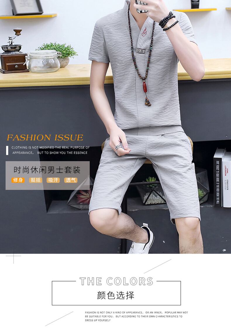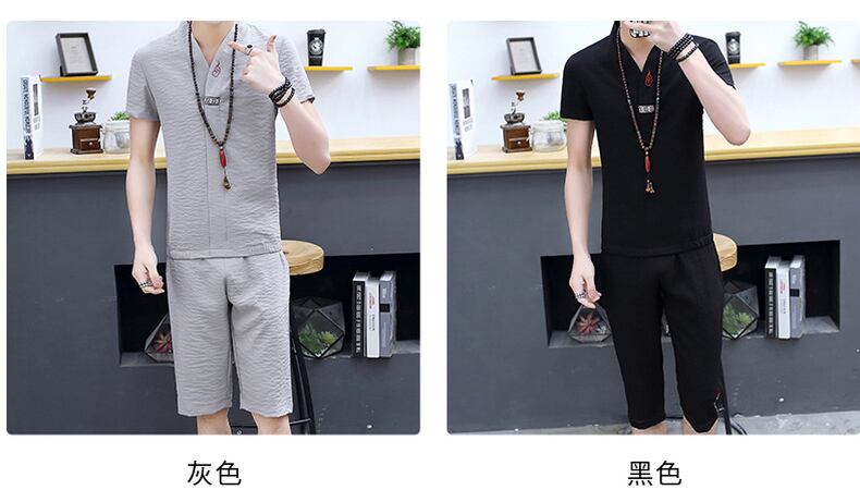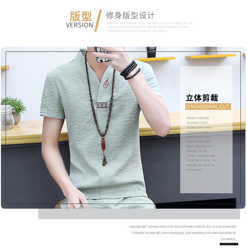 T-shirt men's suit summer cotton and linen trend short-sleeved set with handsome linen Chinese style Tang suit tide brand men's clothing コットン サマー 夏物 Tシャツ doushi97473519454