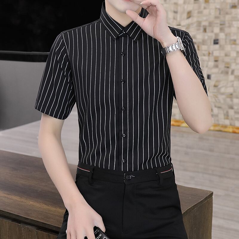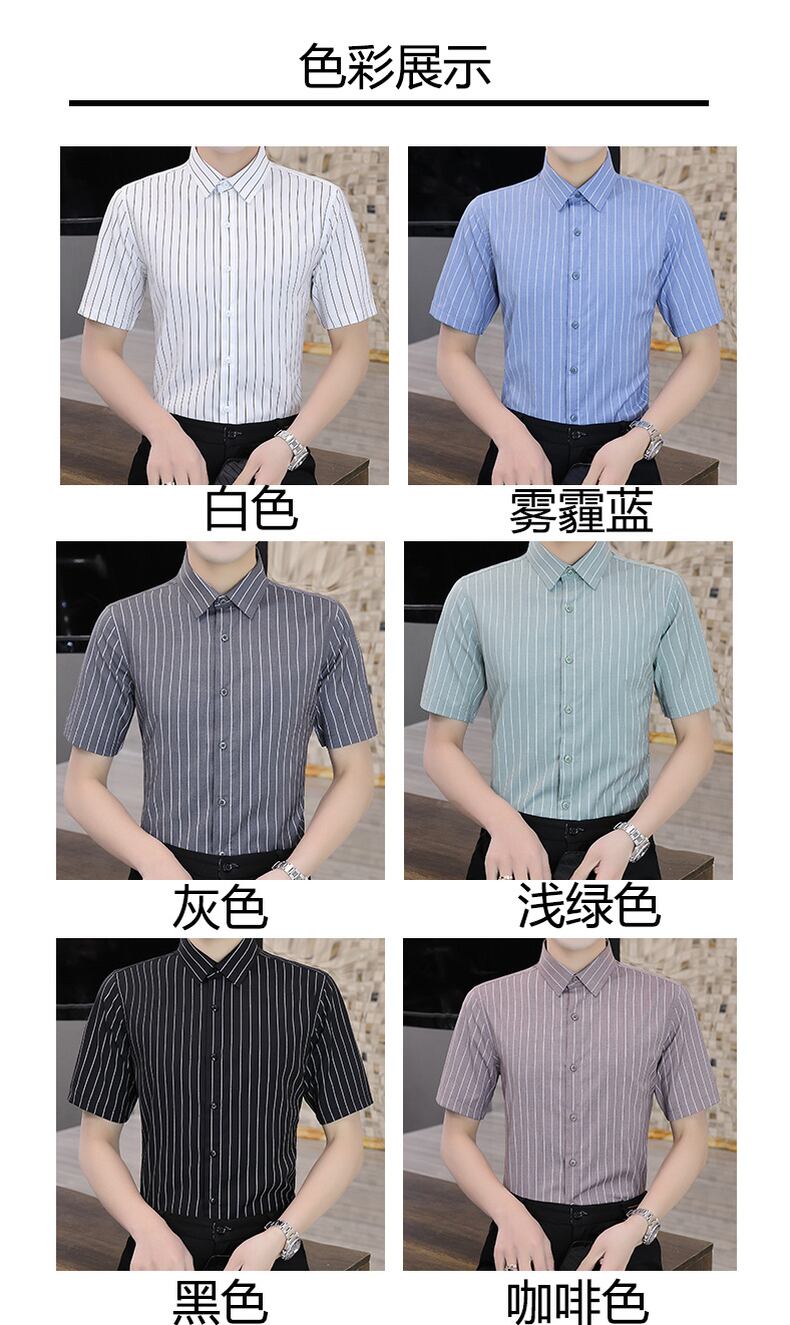 -quality shirt men's anti-wrinkle non-iron slim-fit shirt summer new light business casual short-sleeved striped shirt カジュアル サマー 夏物 ストライプ doushi21876063082