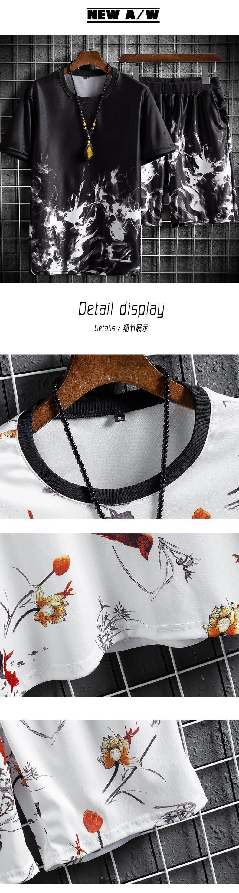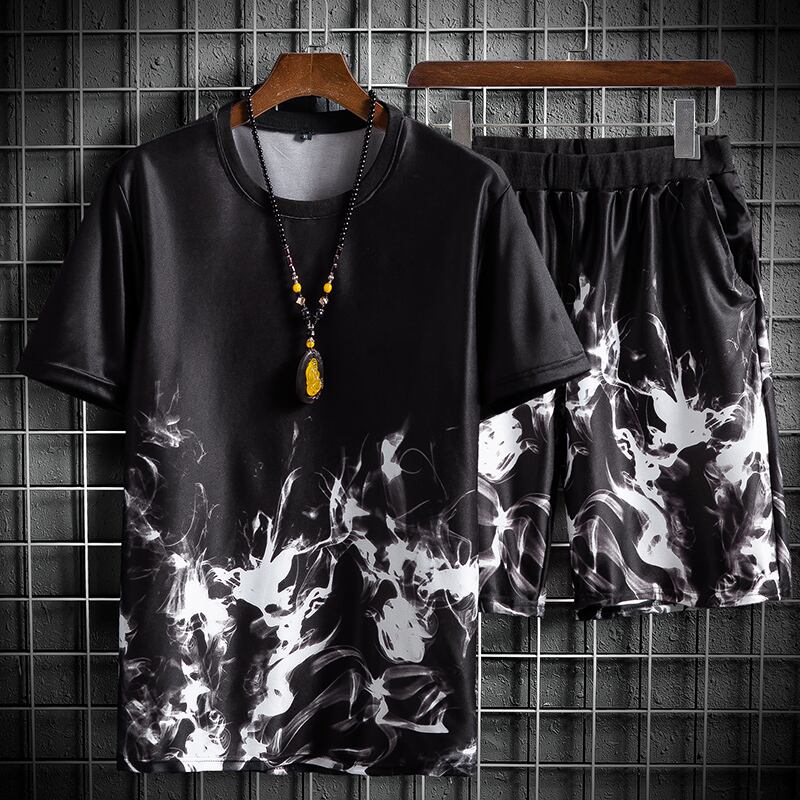 Summer short-sleeved T-shirt men's 2022 new men's wear a set of handsome tide brand clothes casual ice silk suit summer clothes カジュアル サマー 夏物 シルク Tシャツ doushi87474911029