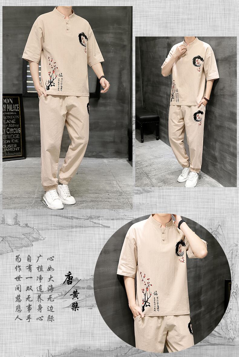 Chinese style men's summer short-sleeved men's suit loose cotton linen t-shirt national tide linen summer embroidery casual コットン カジュアル 刺繍 サマー 夏物 Tシャツ doushi77713186095